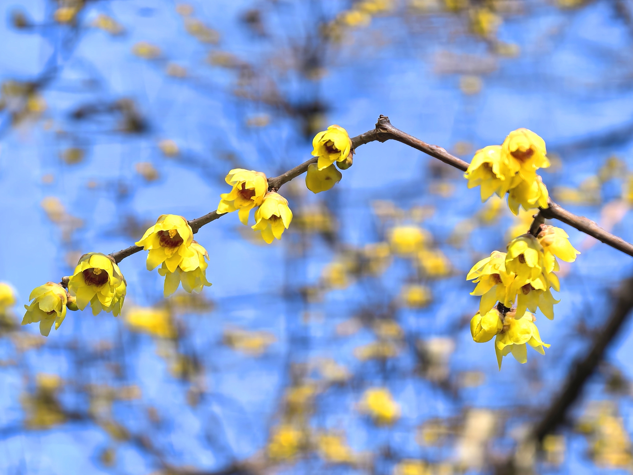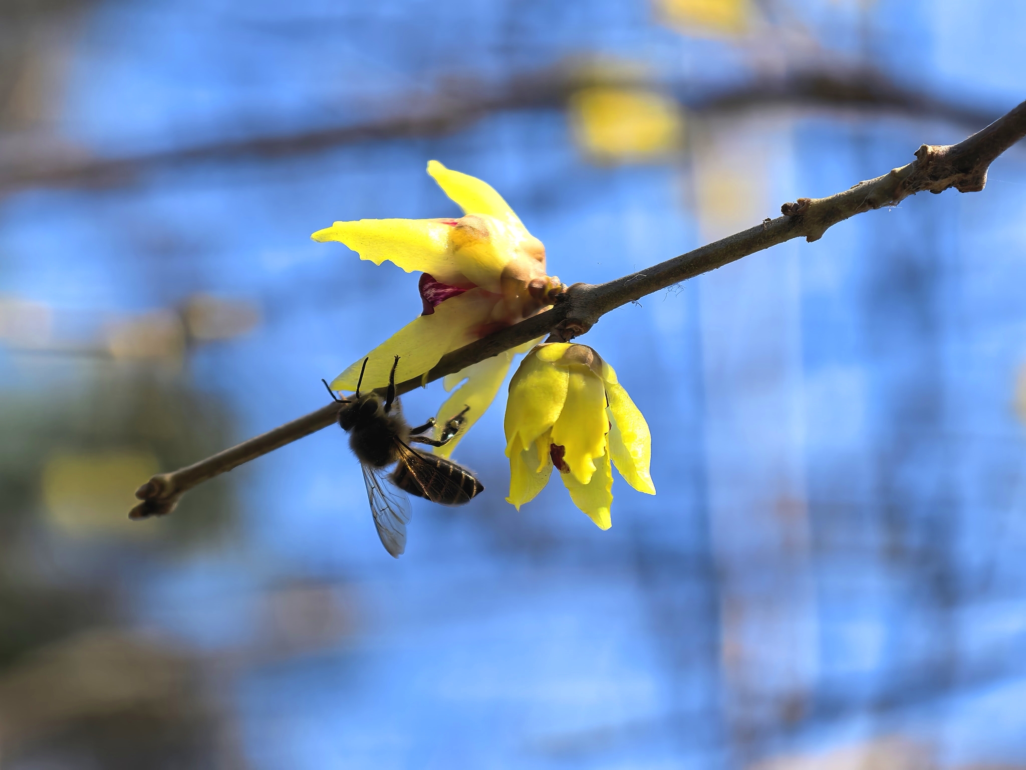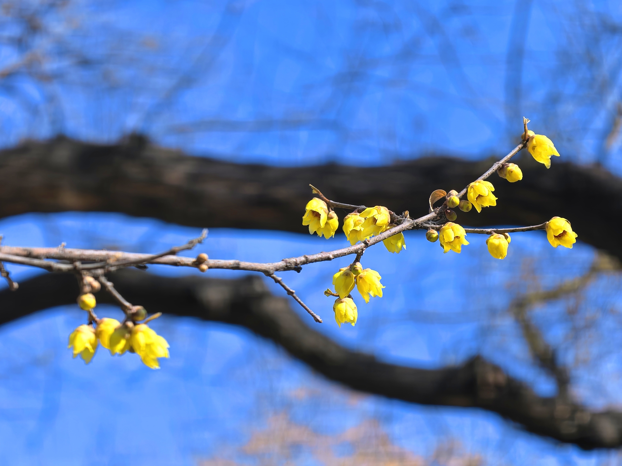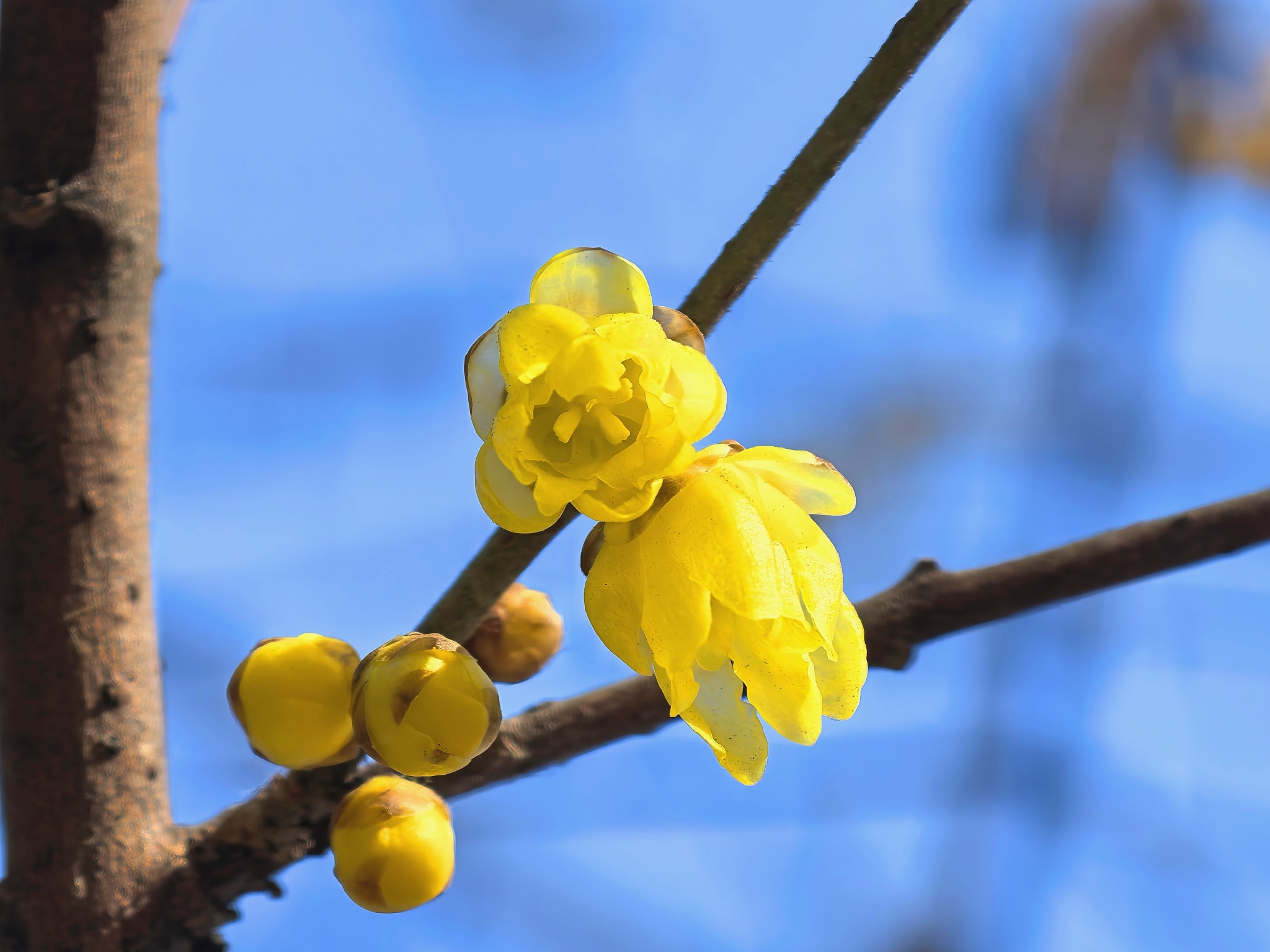 春光明媚,东城区前门东大街北京首都宾馆南墙外,一朵朵蜡梅挂满枝头,有的花蕾初绽,有的含苞待放,金黄色的花朵在阳光下美不胜收。