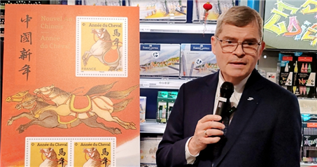 中国驻法国大使馆公使陈力当天在邮票发行仪式上表示,马在中国文化中是力量与速度的化身,更是成功、机遇、忠诚、贤德的象征。自2005年起,法国邮政集团每年在春节前后发行生肖邮票,不仅为中国新年增添了喜庆,也成为中法集邮爱好者的一大盛事。