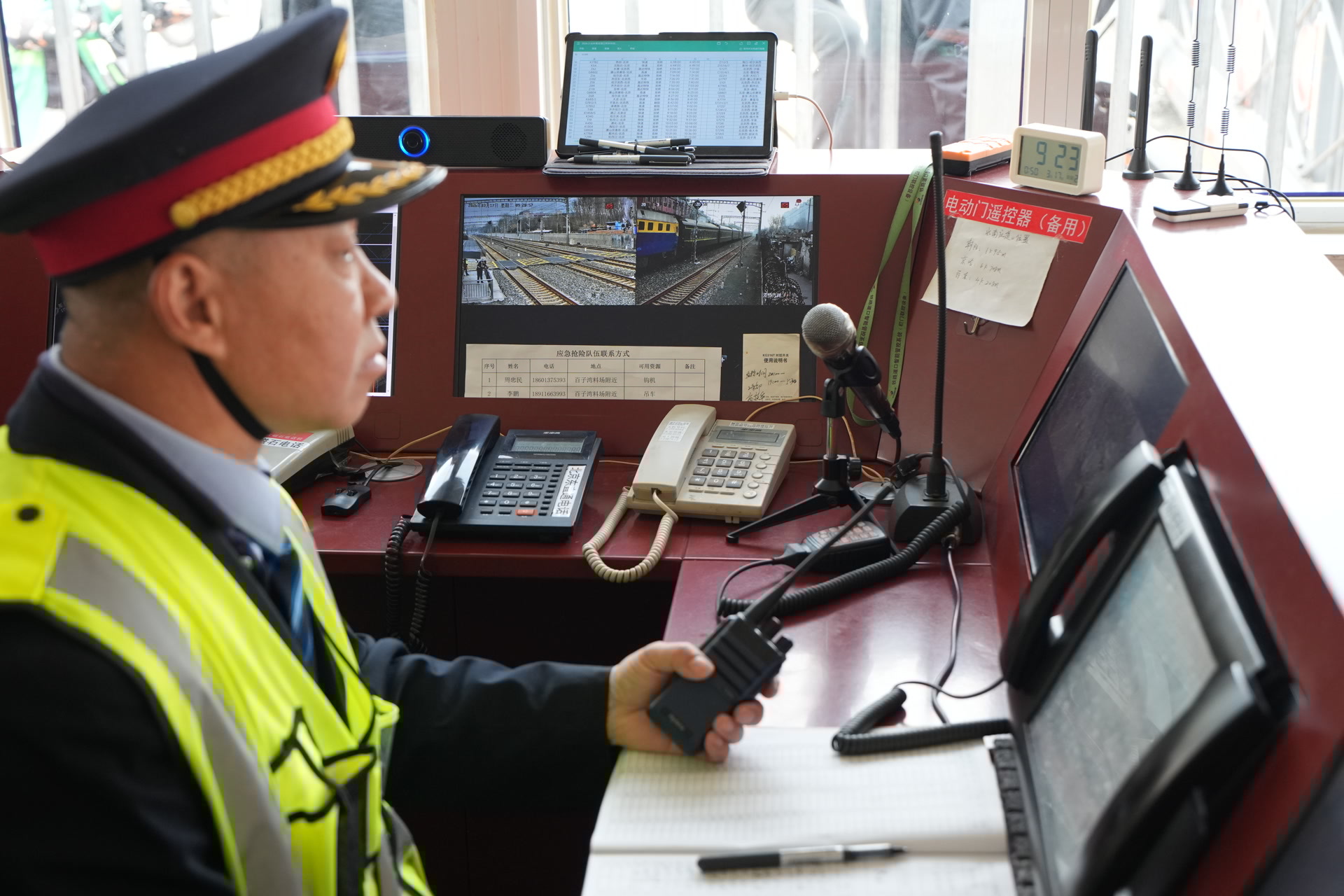 “T5687接近……”水南庄道口值班室内,FAS值班台响起铃声,主班道口工张玉华顺势接起,接收列车司机报告的火车接近信息。他即刻回复:“水南庄道口正常……”列车司机听到回复后,便能放心地通过。
