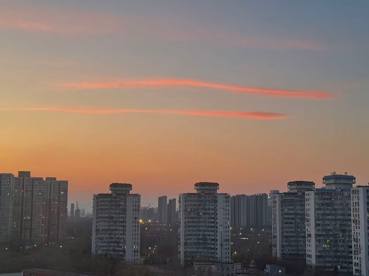 大年初一,北京天空出现玫瑰金日落,大年初一,北京,天空,出现,玫瑰金,日落