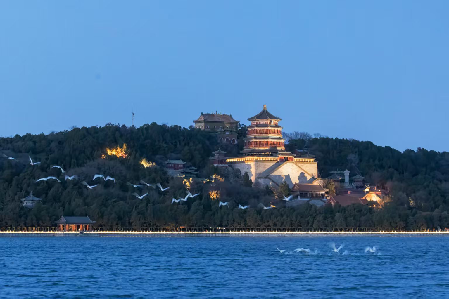 昆明湖之所以成为候鸟迁徙的关键驿站,得益于其优良的生态环境和持续的保护措施。作为北京重要水源地之一,颐和园通过多年坚持水源地生态保护、每年春季推迟游船开航时间等举措,为野生动物提供了安全的栖息空间。