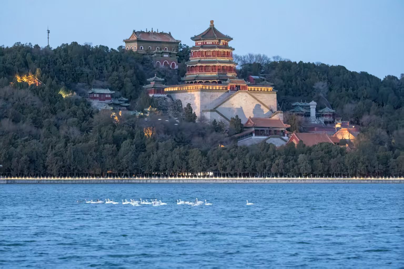 “这里水质清澈、食物丰富,干扰较少,是候鸟理想的休整地。”颐和园管理处专业技术人员表示。天鹅虽不会言语,却以年年如约而至的身影,对这片水域的生态改善给出了最真诚的“肯定”。
