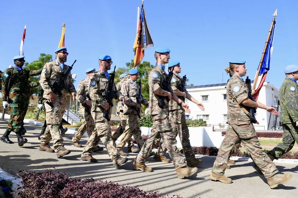 2025年10月24日,联合国驻黎巴嫩临时部队(联黎部队)在其位于黎南部纳古拉镇的总部举行仪式,纪念联合国成立80周年。新华社发(阿里·哈希绍摄)
