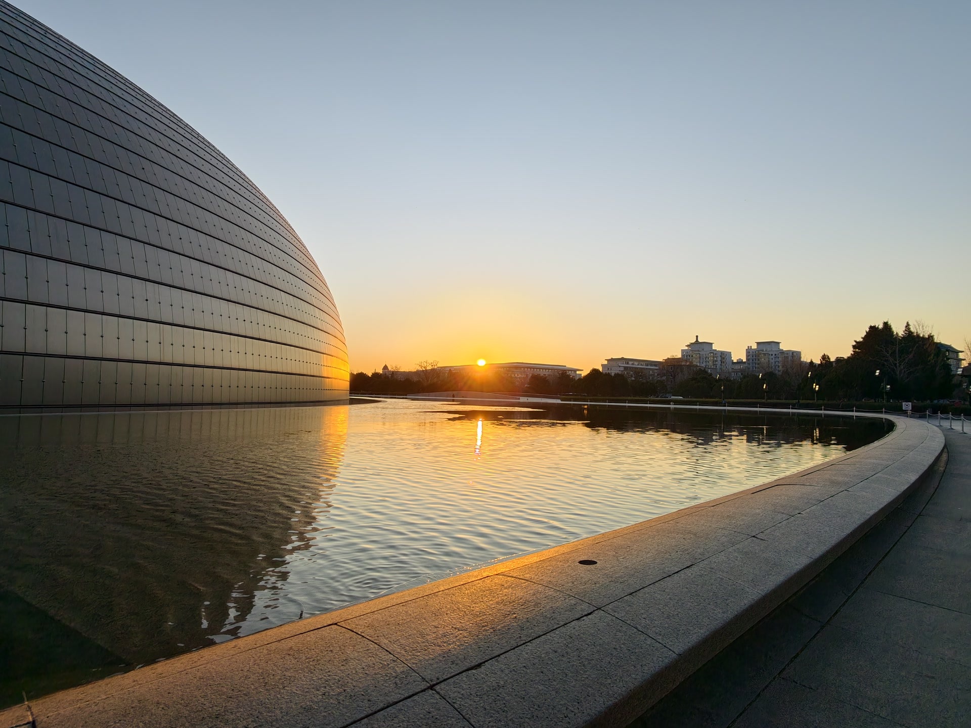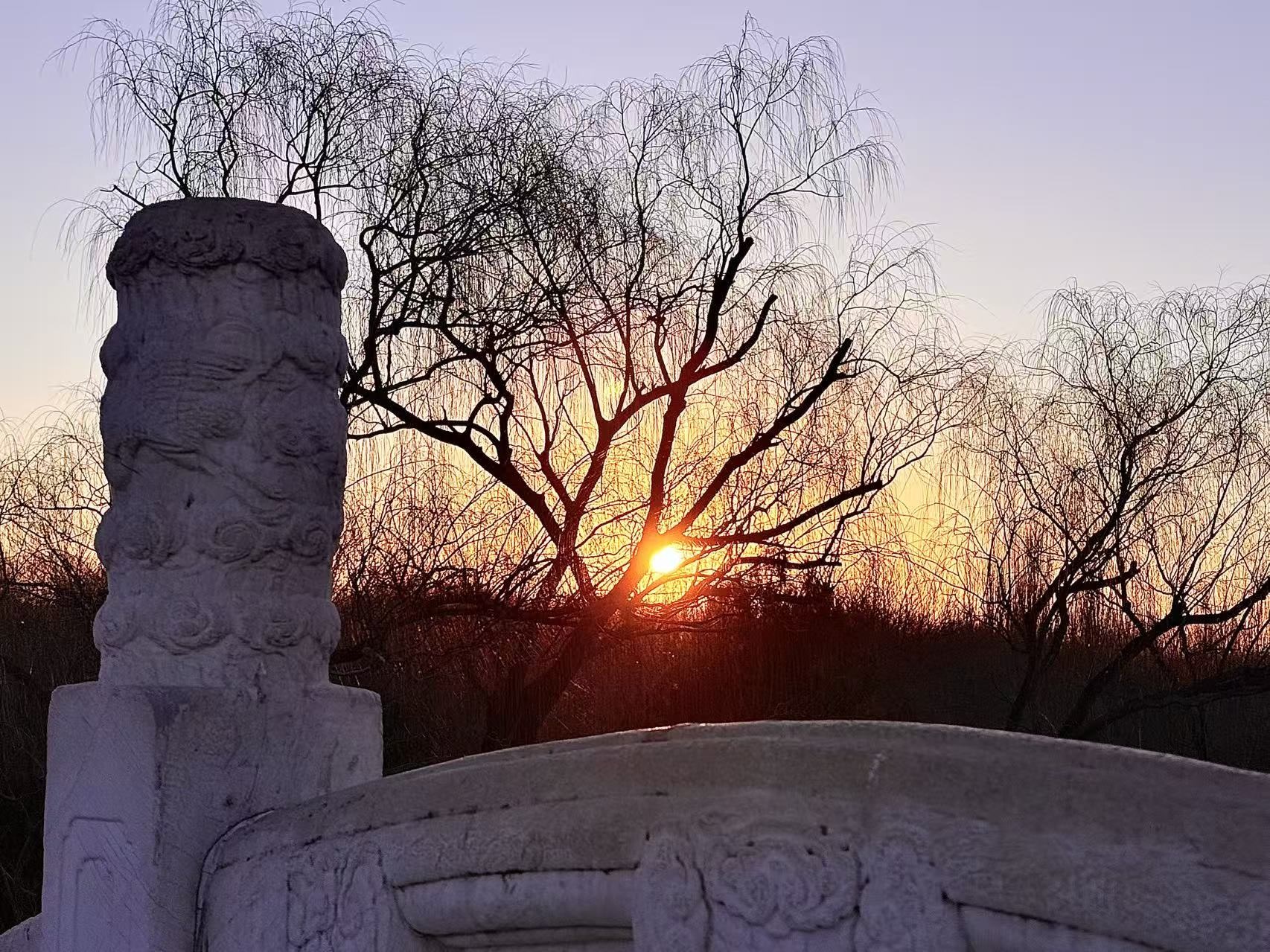 寒潮清晨,北京的日出大片来了。