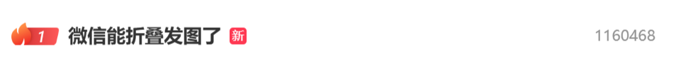 截至发稿,“微信能折叠发图了”的词条登上微博热搜榜首位,且关注度持续提升。
