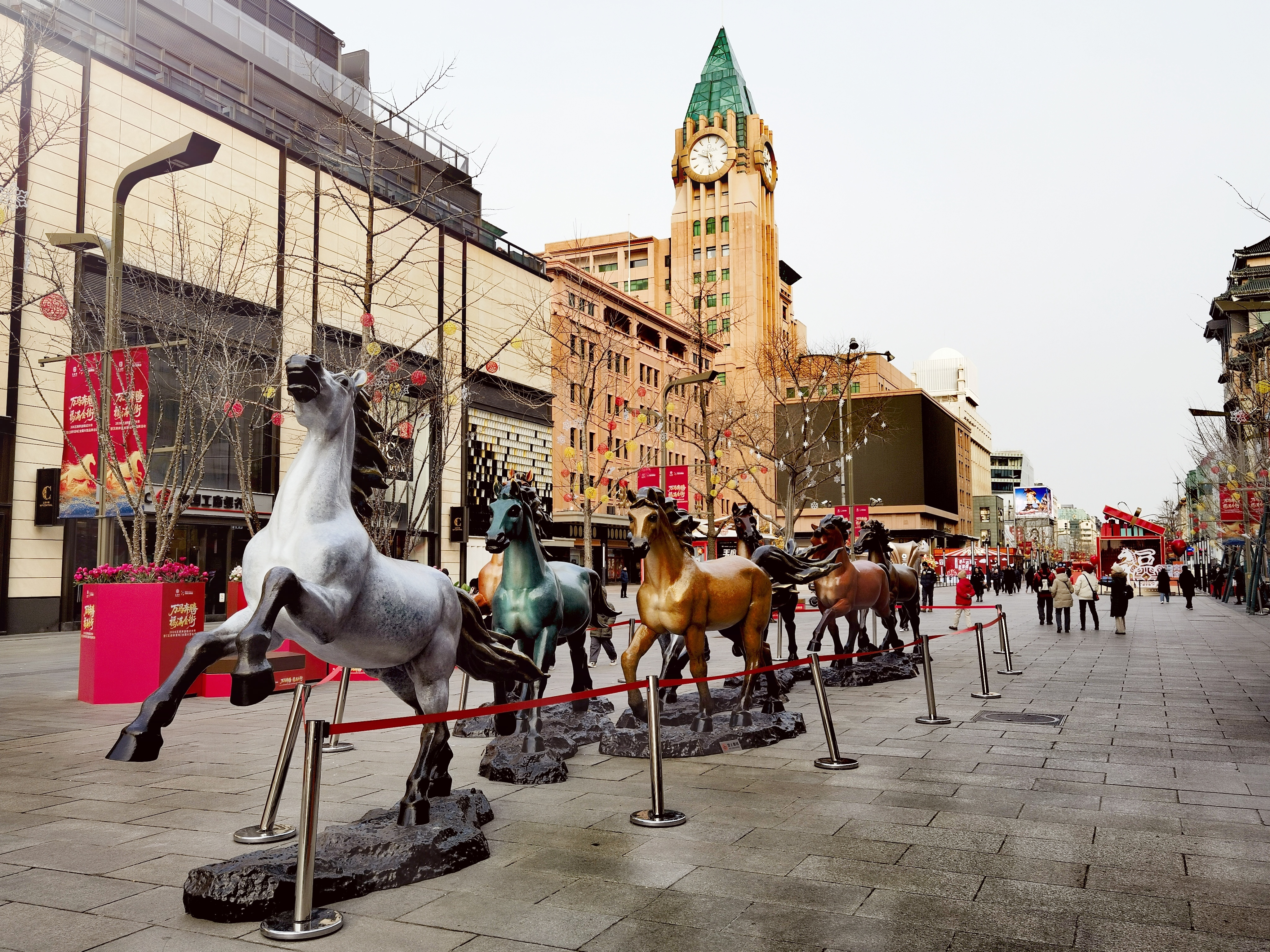 “这大街布置得真漂亮,太有过年的氛围啦!”市民邵女士属马,今年正好迎来本命年,一组“王府八骏”的雕塑让她倍感惊喜。八匹骏马姿态各异,有的正昂首奔腾,有的从容驻足,形成一幅立体的“八骏图”,邵女士连忙上前合影。