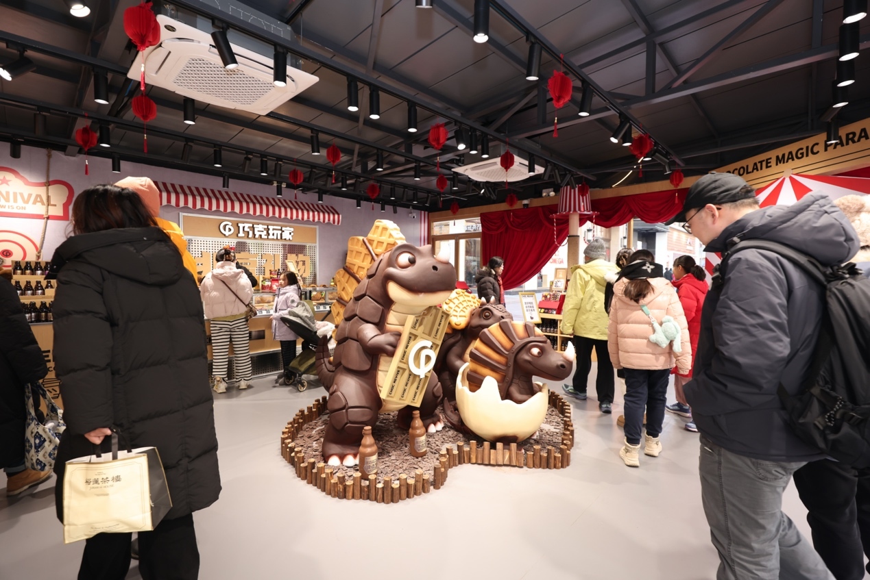 走进李宁“龙店”快闪店,龙年限定系列将传统纹样与潮流设计完美融合,不少年轻人正在店内试穿;转身踏入巧克玩家的沉浸式艺术特展,巧克力不再是食物,而是可观赏、可互动、可拍照的艺术品;名创优品与迪士尼《疯狂动物城》联名店里有不少限量周边,Helen emotion's潮玩集合店则汇集了全球热门IP的治愈系玩偶、限定盲盒等,不少收藏爱好者特意前来“寻宝”。