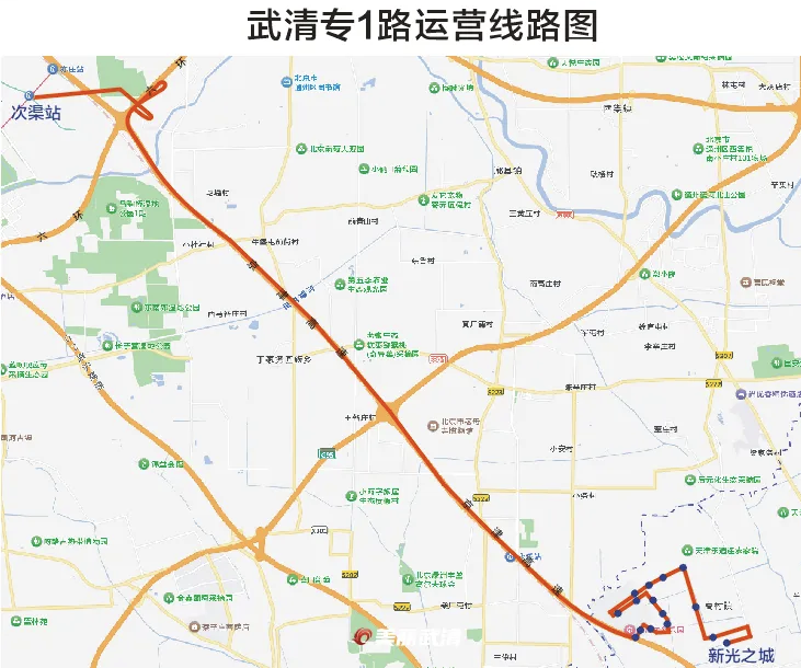 在天津市交通运输委、北京市交通委和通州区相关部门大力支持下,连接天津武清与北京通州的“新光之城——次渠地铁站”跨省公交线路“武清专1路”已筹备完毕,将于4月20日正式开通试运行。