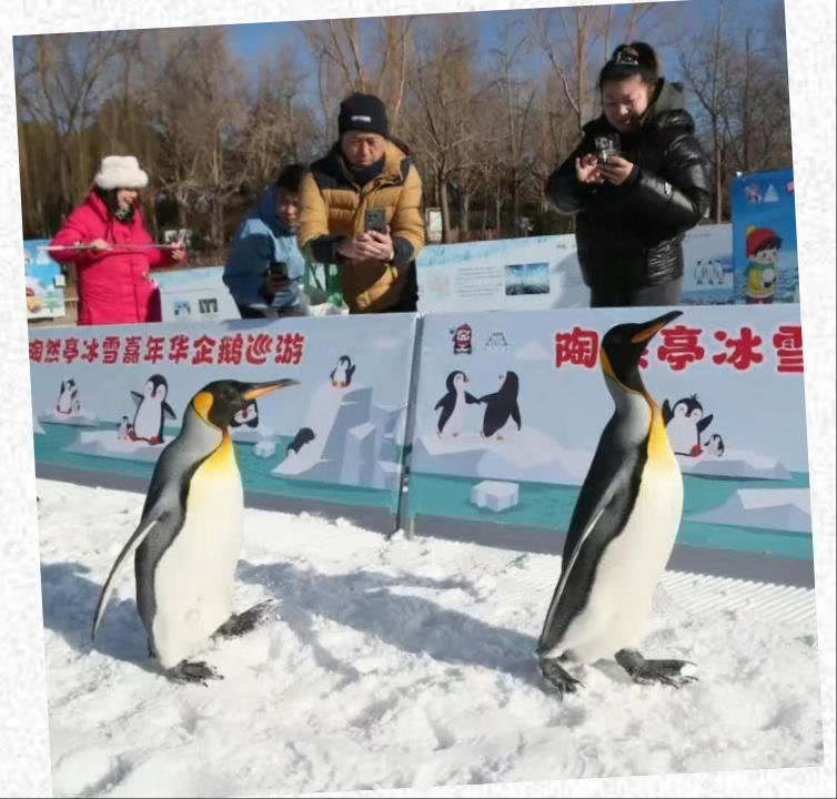 上午十点半,陶然亭公园冰雪嘉年华的企鹅巡游准时开场了。