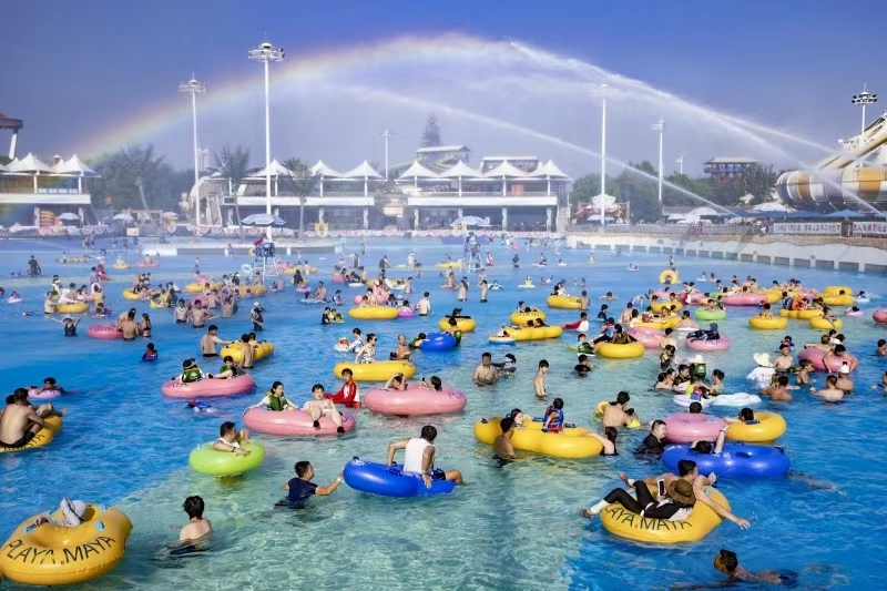 上海海昌海洋公园推出“虎鲸造浪节”、戏水“派对”等,又增加张拉膜、雾森系统,提供免费的冰袋、酸梅汤等,帮助游客防暑降温。上海玛雅海滩水公园推出的“泰浪狂欢节”让人们在尽情嬉水的同时,感受泰国风情。