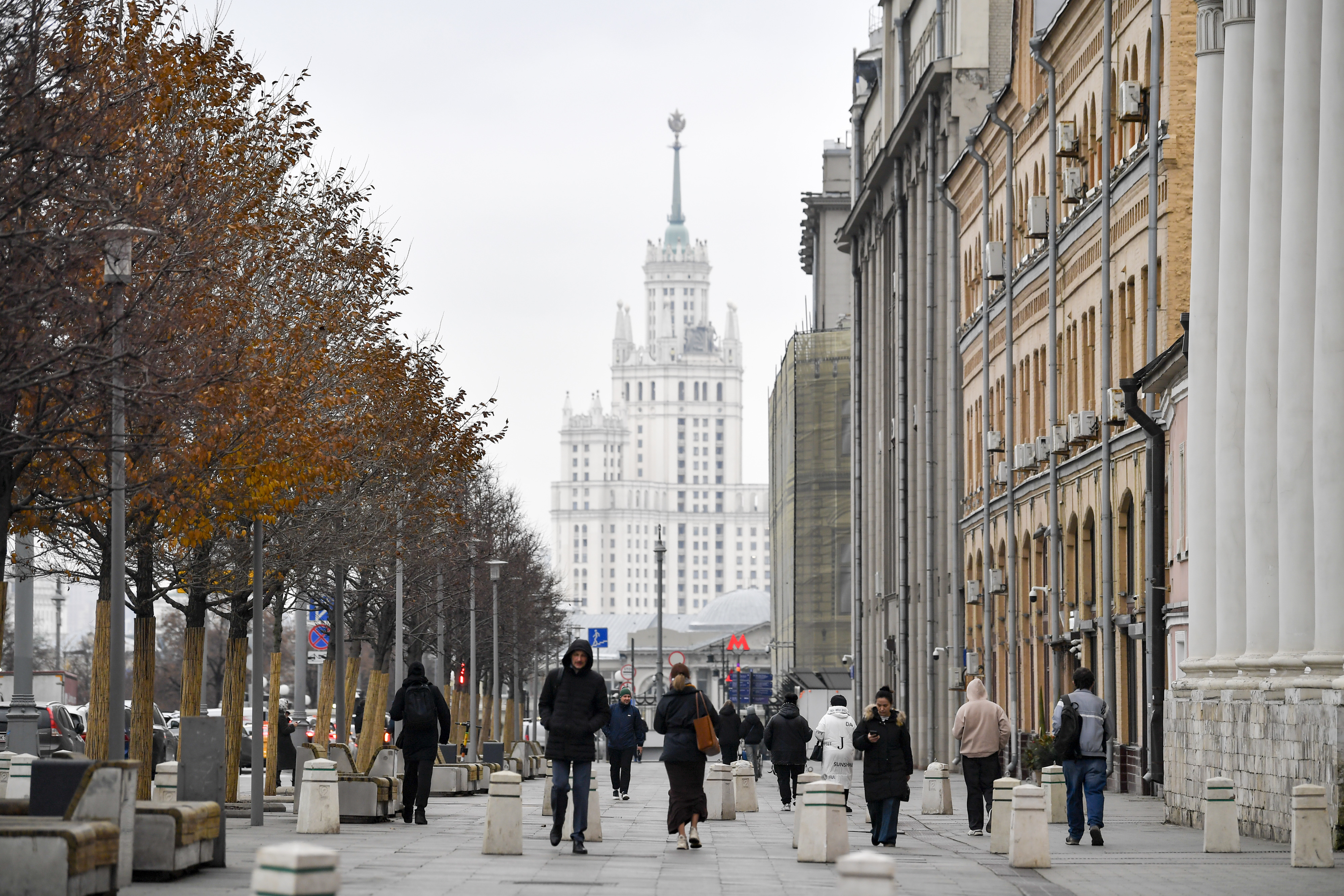 11月11日,行人走在俄罗斯首都莫斯科街头。