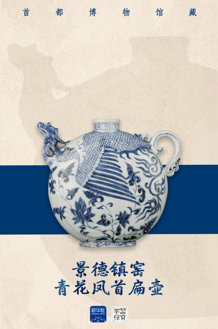 青花瓷在中国陶瓷制作发展历史上占有极其重要的地位。制瓷业发展到元代,青花瓷的工艺得到了极大的提升。此件扁壶正是此时期的产物,它是中原文化与草原文化、青花图案装饰与造型工艺相融合的体现,给人以新颖、奇特、别致之感,堪称一件精美绝伦的艺术佳作。