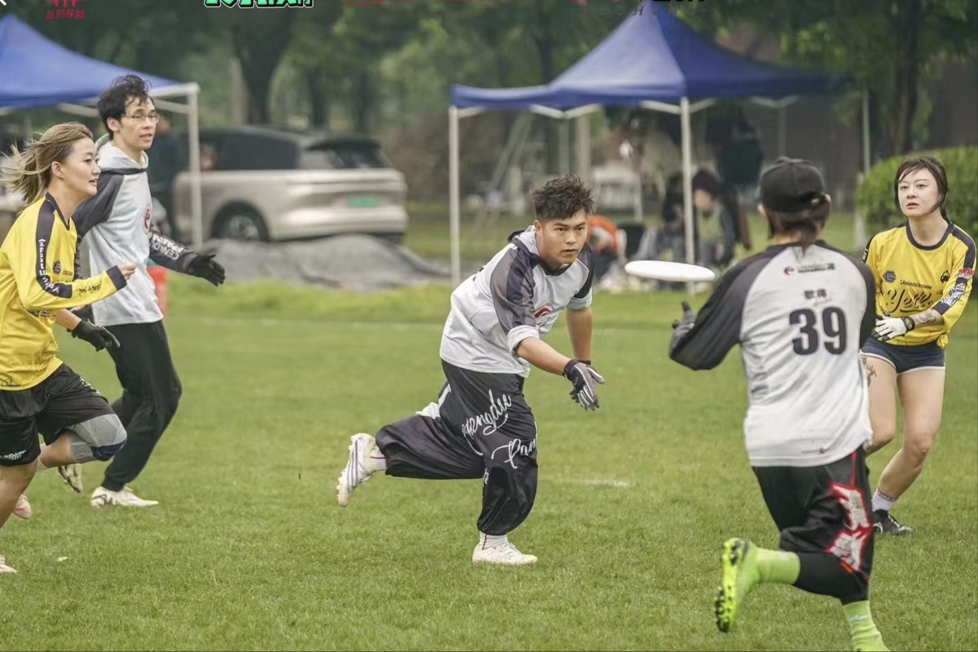 彭宇在参加飞盘俱乐部活动