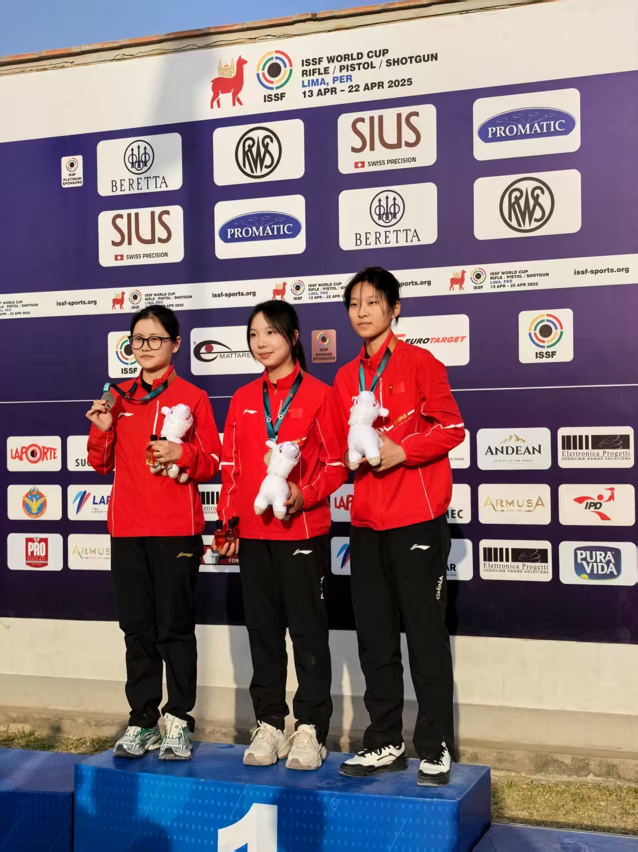 王子菲、韩佳予和范馨仡包揽射击世界杯秘鲁站女子10米气步枪前三名。中国射击队供图