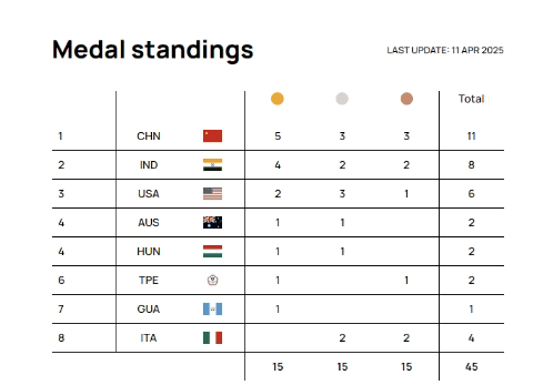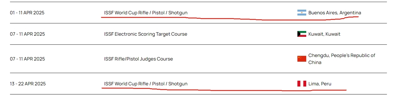日期显示为4月11日的动图为世界杯阿根廷分站赛果。显示为4月22日的动图为世界杯秘鲁分站赛果。图片来自国际射联官网