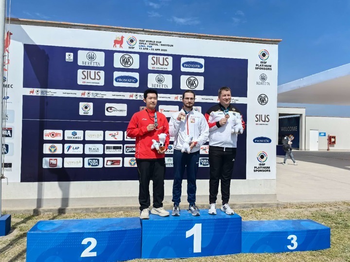 苏连博凡获得射击世界杯秘鲁站男子25米手枪速射银牌。图片来源于中国射击队