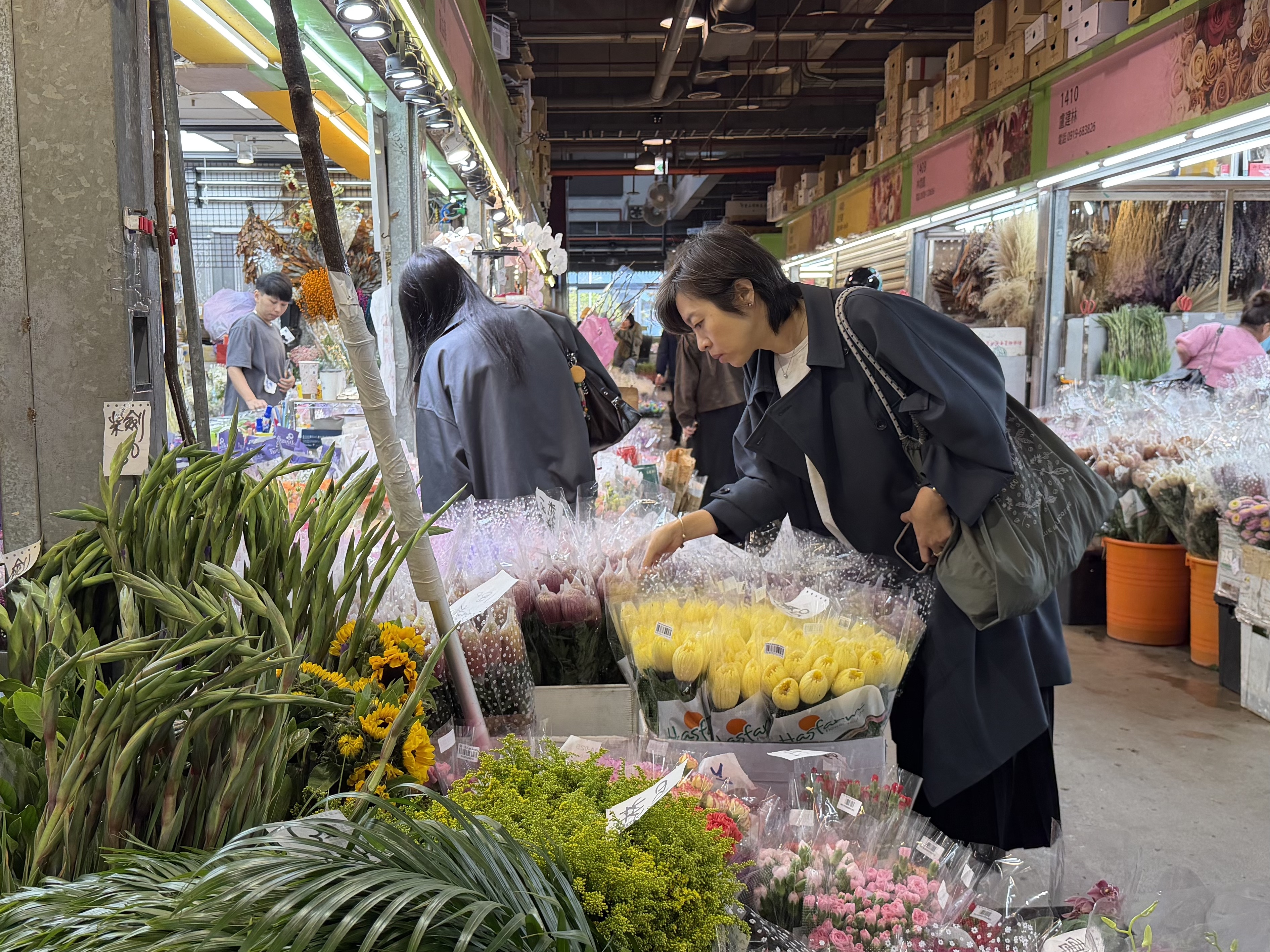 60多岁的新竹市民金先生在内湖花市采购了七八种鲜花。作为资深“花友”,台北各大花市是他新春必逛之地。金先生说,家人一起大扫除、贴春联、插年花,“这样才算是有过年的样子”。