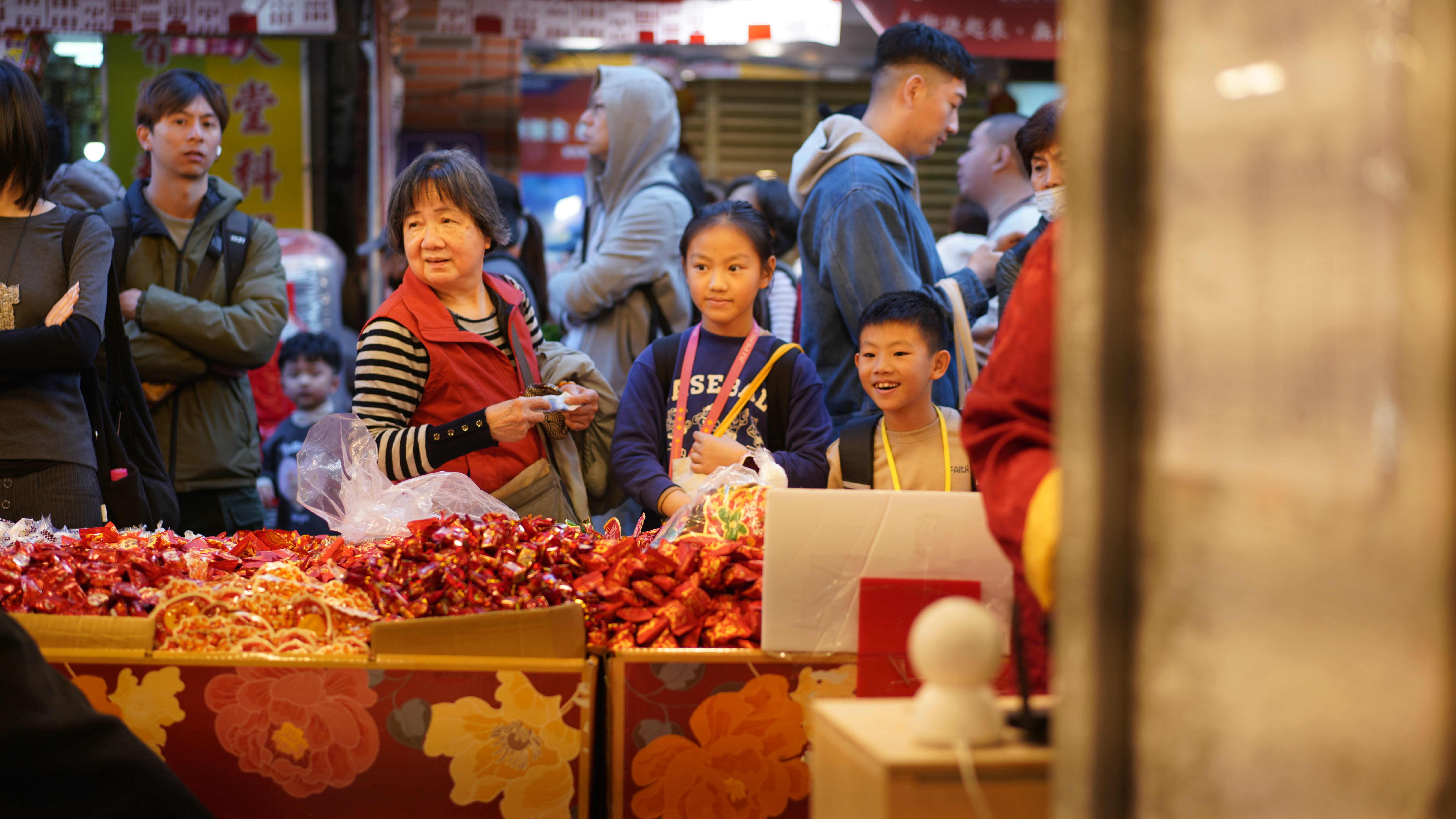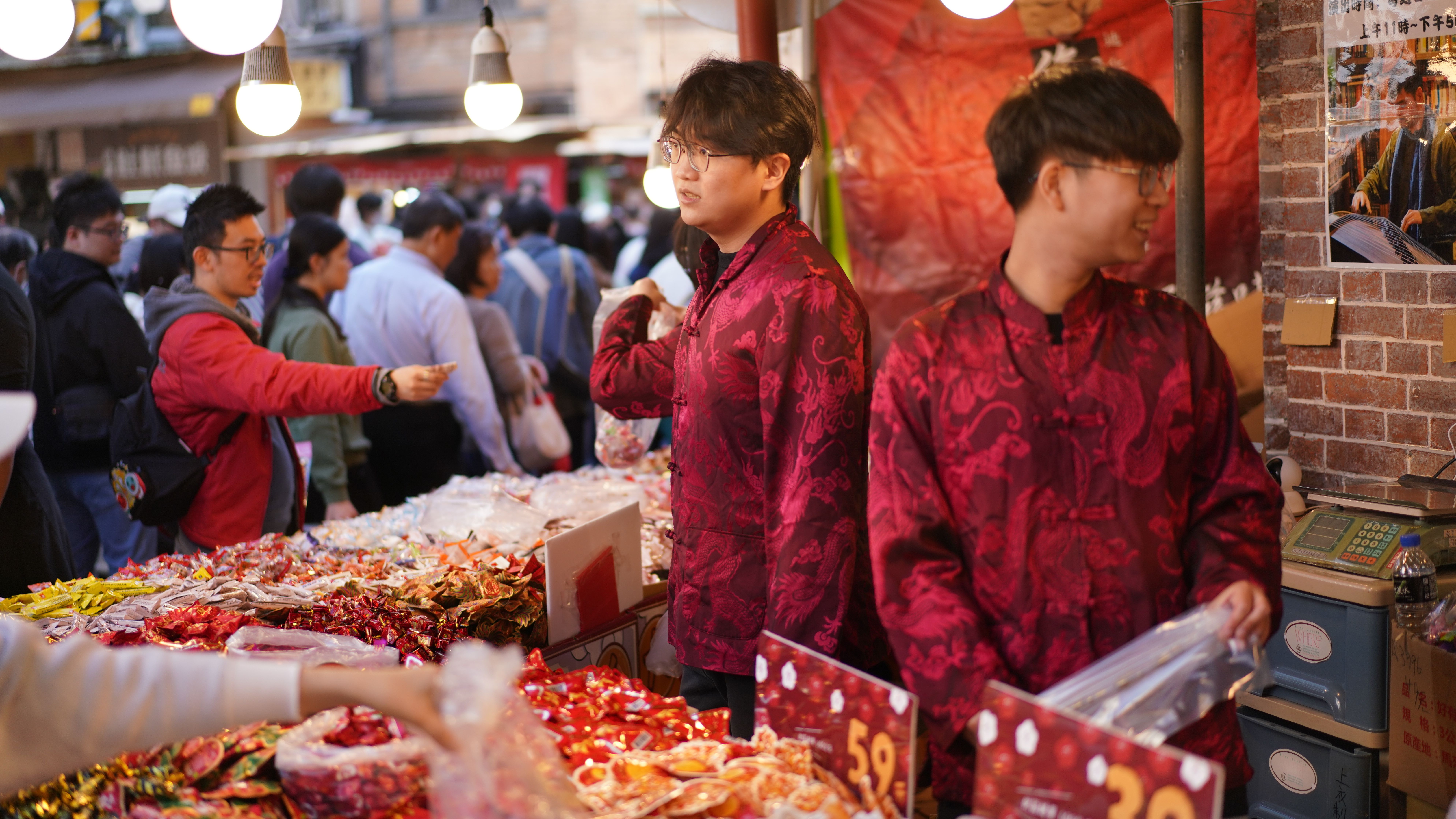 乌鱼子、猪肉干、鱿鱼条、牛轧糖、开心果……家住新北的王恒远拖着购物车,满载着年货与喜悦而归。“小时候,家里小孩子们聚一块,吵着向大人要糖吃。那种热闹,就是实实在在的年味。”王恒远笑着说道。