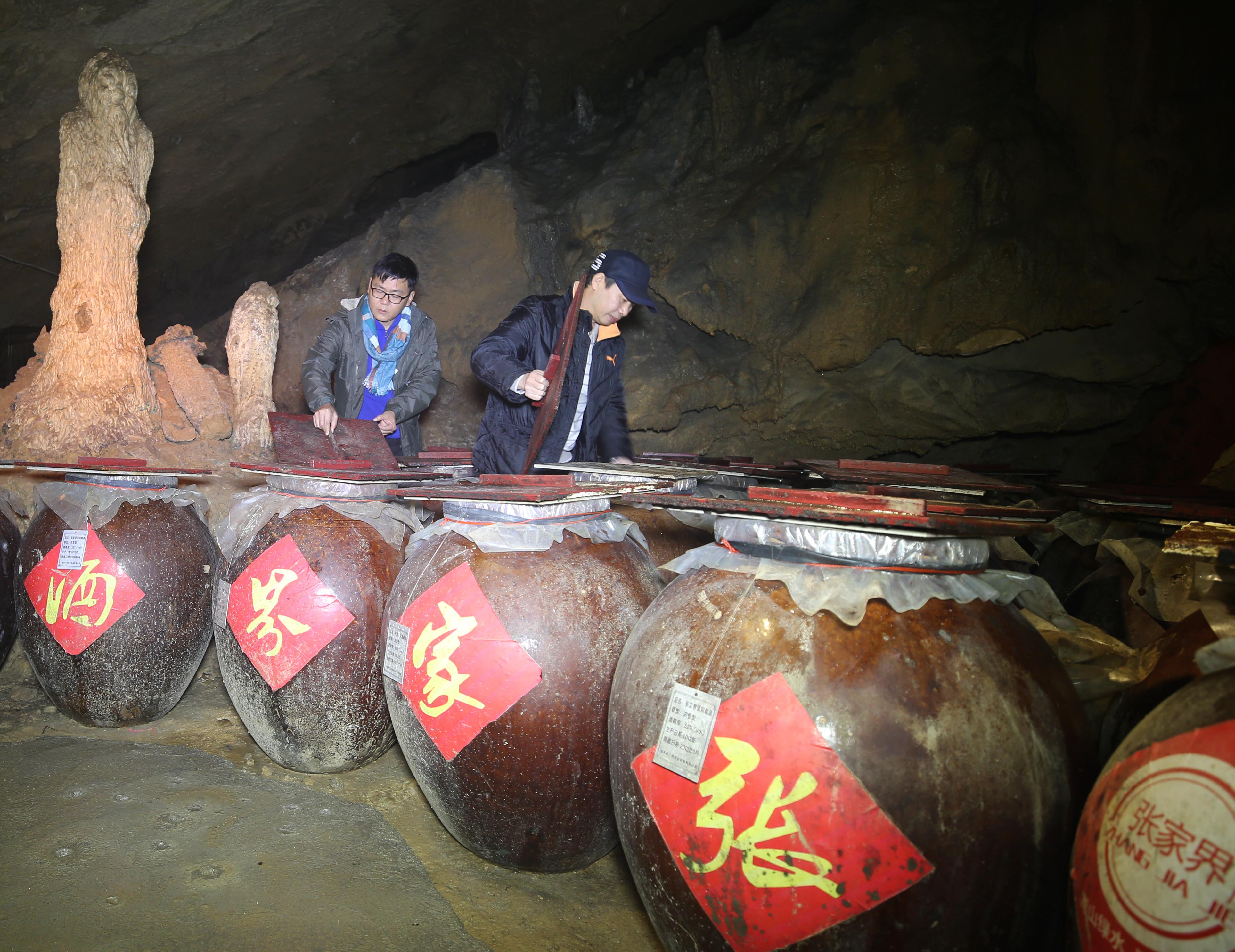 在湖南张家界市武陵源区“张家界酒”洞藏基地,工作人员将新酿制的原酒封坛。洞藏是张家界武陵源区沿袭多年的一种白酒储藏工艺,原酒在自然封闭的恒温、恒湿、无光照的天然洞穴中,经过长时间密封保存,酒体变得更加细腻、醇厚。