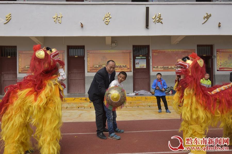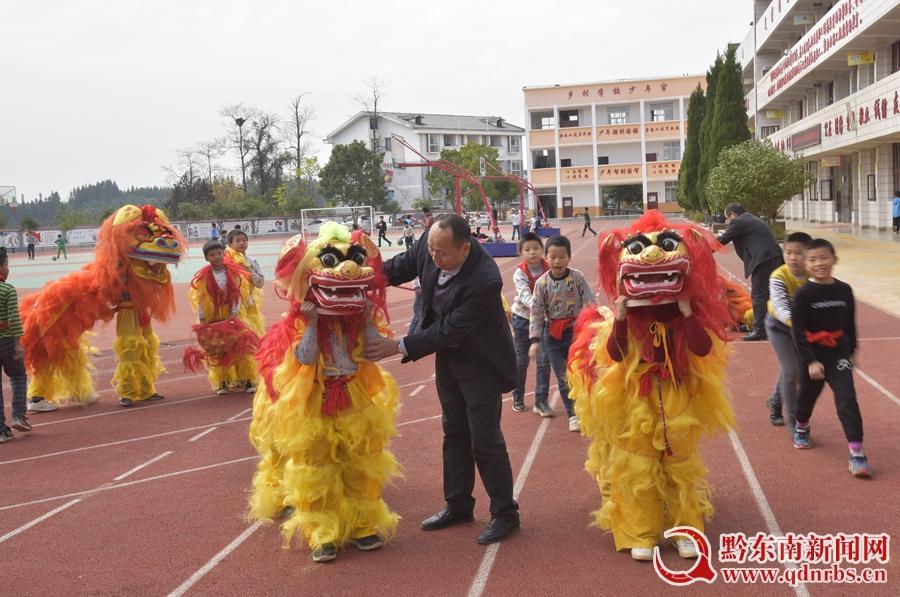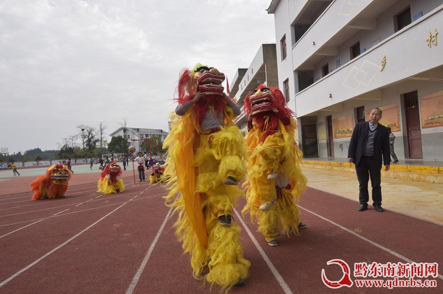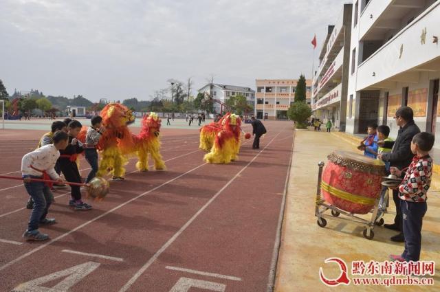 锦屏县新化小学的孩子们在舞狮老师的引导下练习舞狮。近年来,锦屏县中小学将民族舞蹈、民间舞狮、民间舞龙作为特色健身项目引入学校。每天利用课余时间让学生进行民族舞蹈、民间舞狮、民间舞龙等体育项目,在健身的同时传承民族文化。