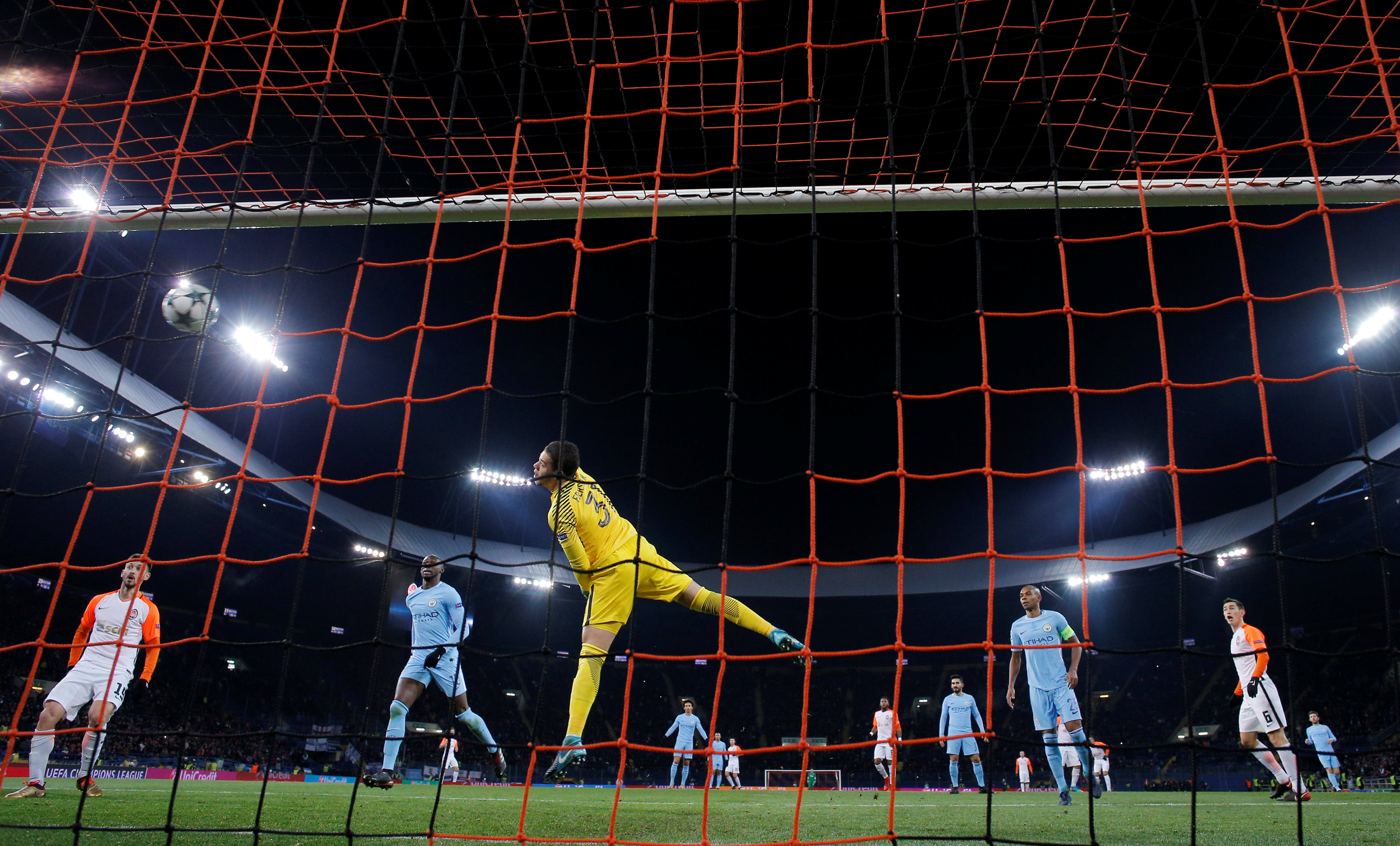 在2017-2018赛季欧洲足球冠军联赛F组最后一轮比赛中,英超曼城队客场以1比2负于乌克兰顿涅茨克矿工队。新华社/路透12月6日,曼城队守门员埃德森(前中)未能防守住顿涅茨克矿工队球员伯纳德(未在画面中)的射门。