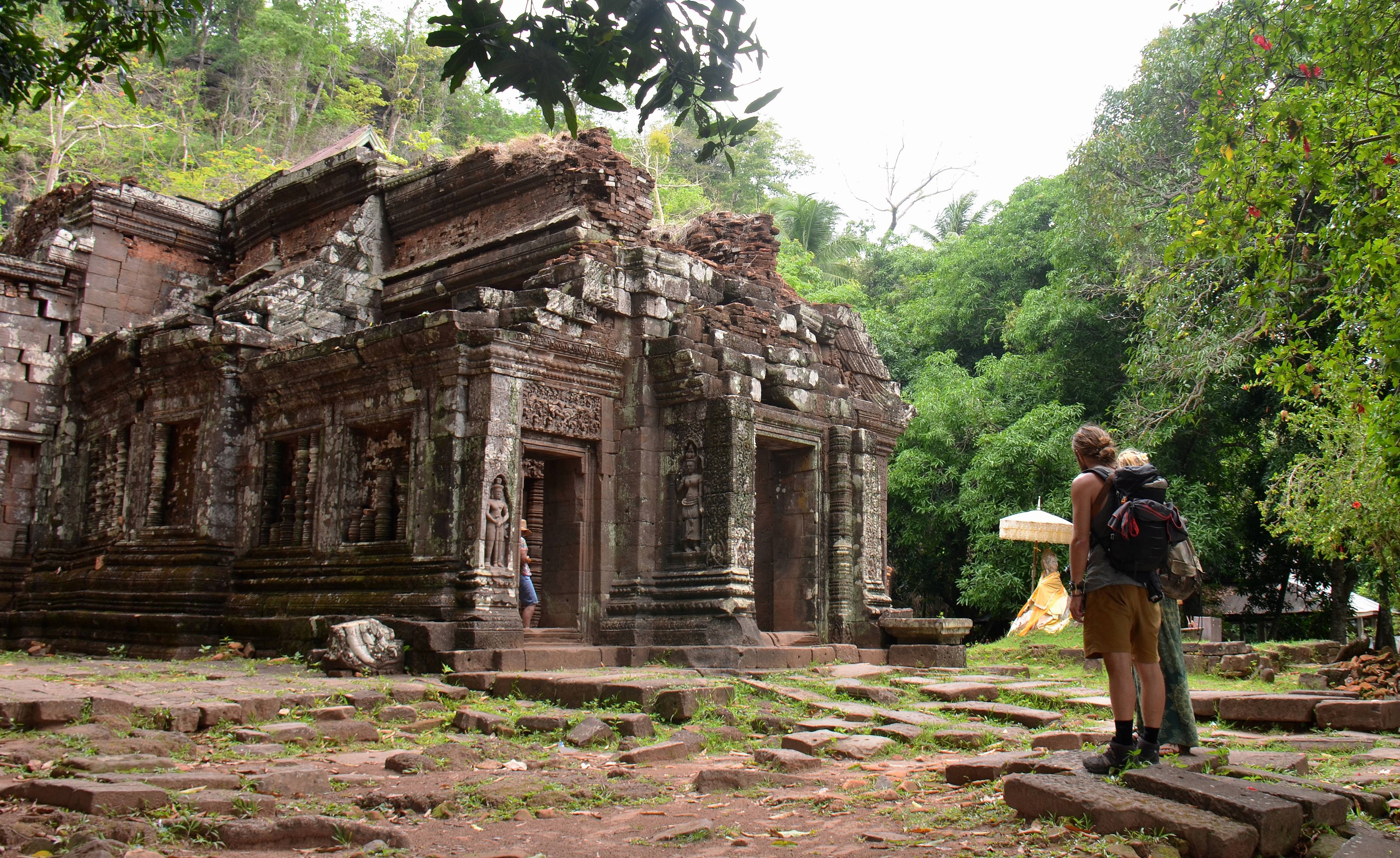↑这是2017年5月5日拍摄的游客在老挝占巴塞省瓦普庙游览的资料照片。瓦普庙位于老挝南部的占巴塞省,被联合国教科文组织列入世界文化遗产名录。