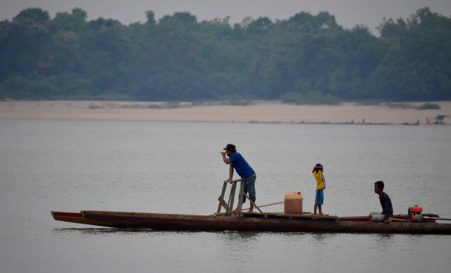 ↑这是2017年5月4日在老挝占巴塞省拍摄的居民乘船过河的资料照片。占巴塞省是老挝南部的一个省份,与泰国和柬埔寨接壤。