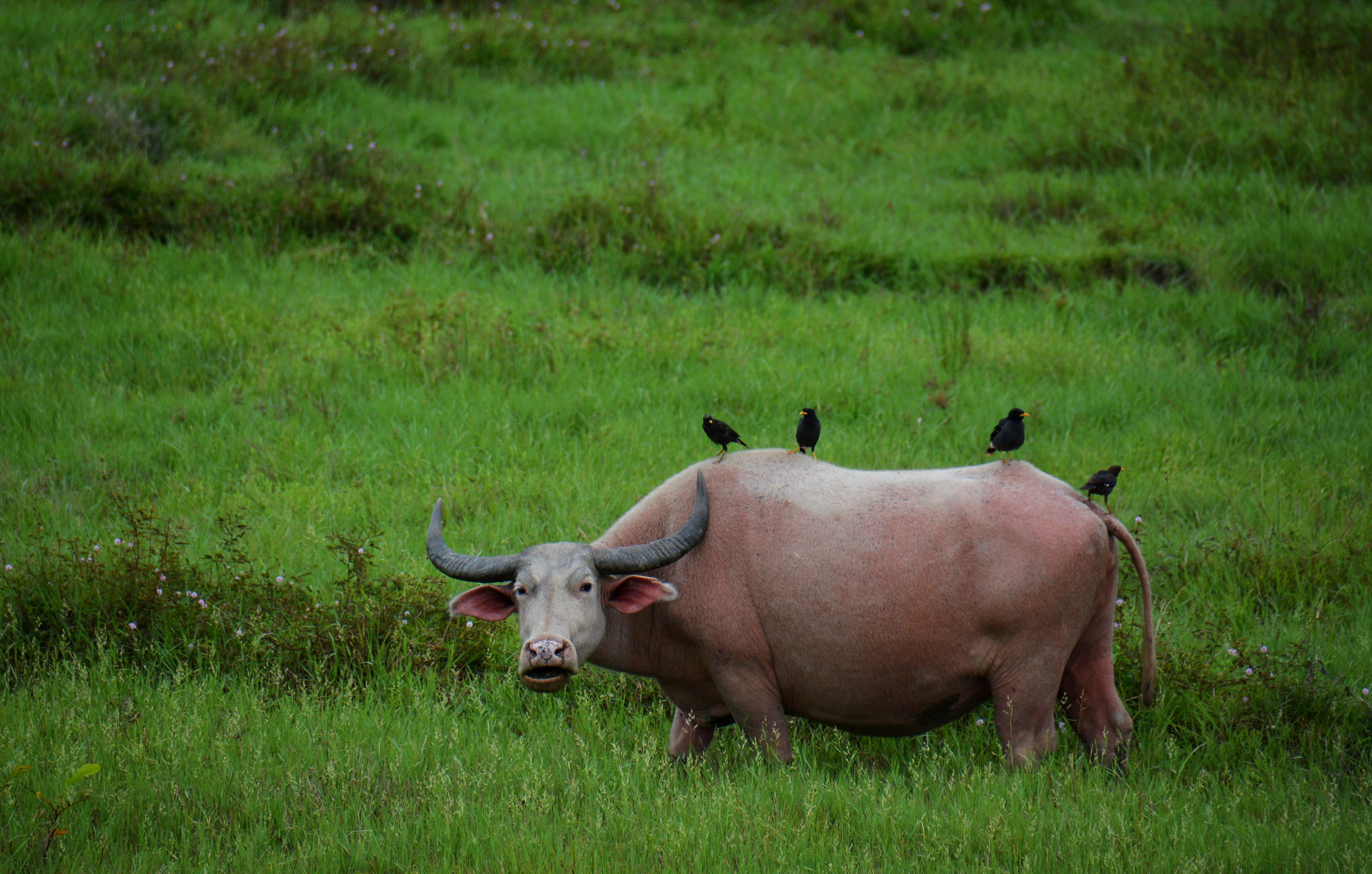 ↑这是2017年10月5日在老挝万象省拍摄的路边的水牛。新华社发(刘艾伦摄)