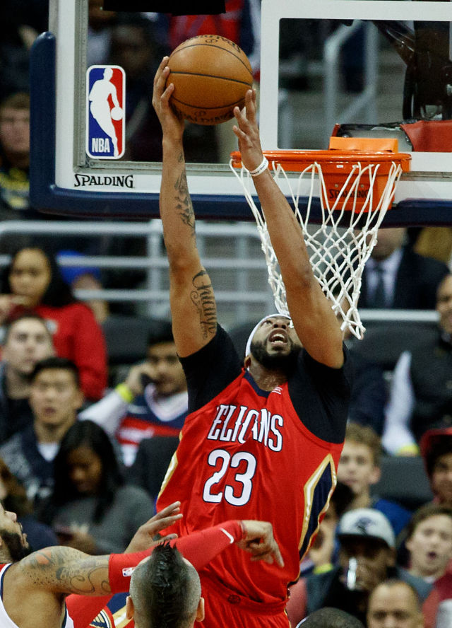 ↑12月19日,鹈鹕队球员戴维斯在比赛中扣篮。