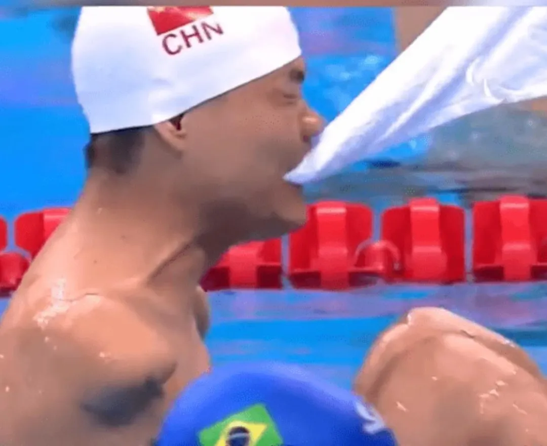 被称为“无臂飞鱼”的老将郑涛,此前因一张“咬毛巾”的照片被网友熟知。