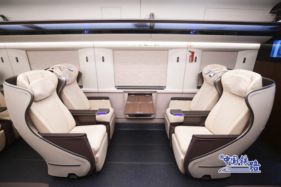 为了满足旅客出行多样化需求,根据前期市场调查,铁路部门将17辆编组列车部分一等座席升级为优选一等座席。优选一等座席设在17号车厢,共24个座席,使用贝壳式电动座椅,靠背和腿部角度可独立调节,配备折叠桌、电源插座、可调节阅读灯等设施,前后排座椅间距进一步拉大,座椅可180度旋转,将为旅客提供更舒适的乘车体验。持优选一等座席车票的旅客享受一等座席常规服务,还可使用专区进站候车。