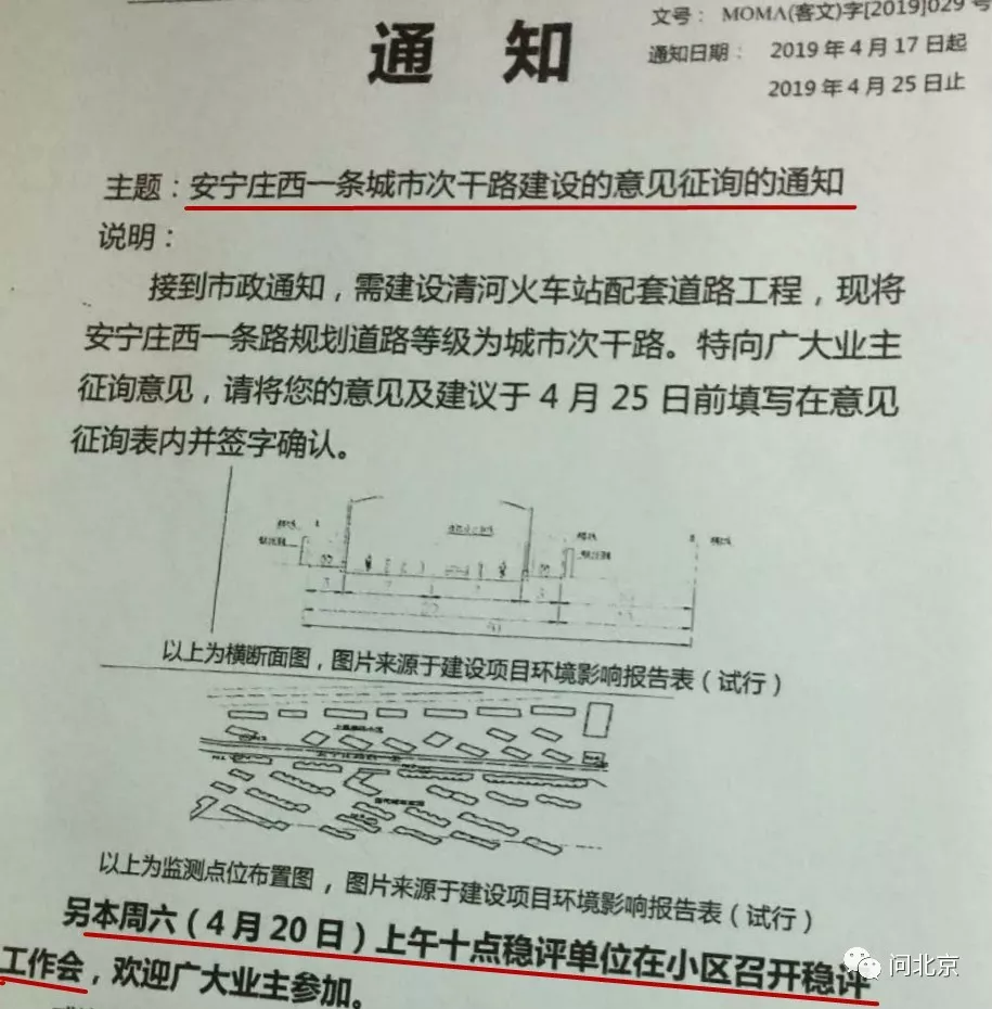 居民所说的“稳评”是指计划于4月20日在小区召开的安宁庄西一条道路扩建社会稳定风险分析公众参与会。