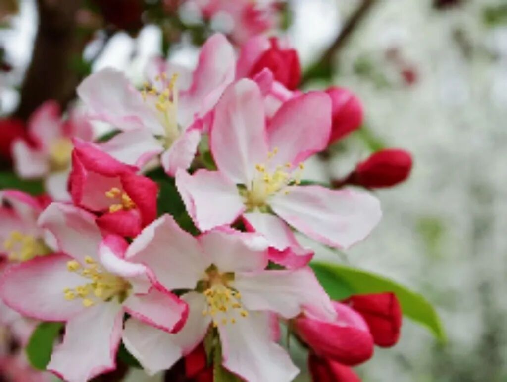 海棠“哨兵”:花色特别,花蕾鲜红,花瓣白里透粉。