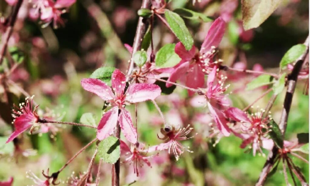 海棠“薄荷糖”:平枝海棠,体量中,花色娇艳、花色越开越红。