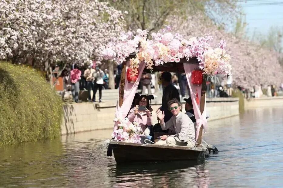 “一带”:小月河水带,两岸海棠倒影成画。今年河道两侧新增了多处亲水平台,您可以感受“花落水流红”的诗意。