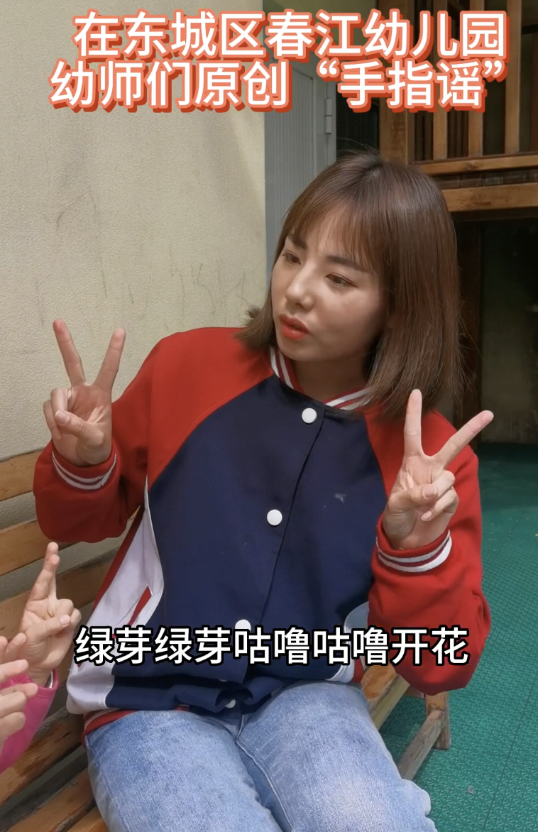 其实,类似的“手指谣”在幼儿园里很常见,在东城区春江幼儿园,老师们正用原创童谣和小朋友们做游戏: