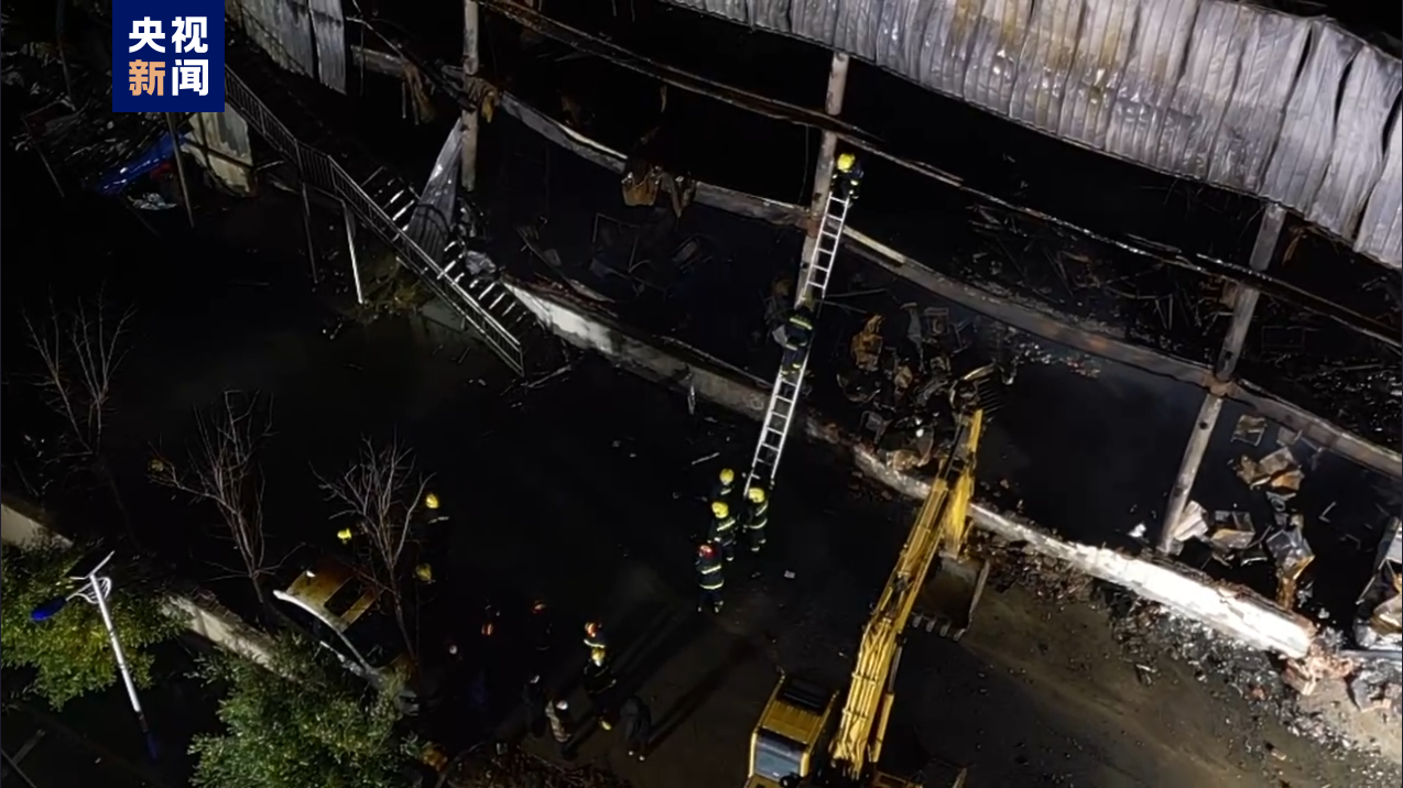 记者赶到现场后看到,整个着火区域已拉起警戒线,停了多辆消防车,架起了消防云梯,消防救援人员还在进行着火区域的扫尾工作,整个着火的厂房已经熏黑变形,内部结构基础设施损坏严重。