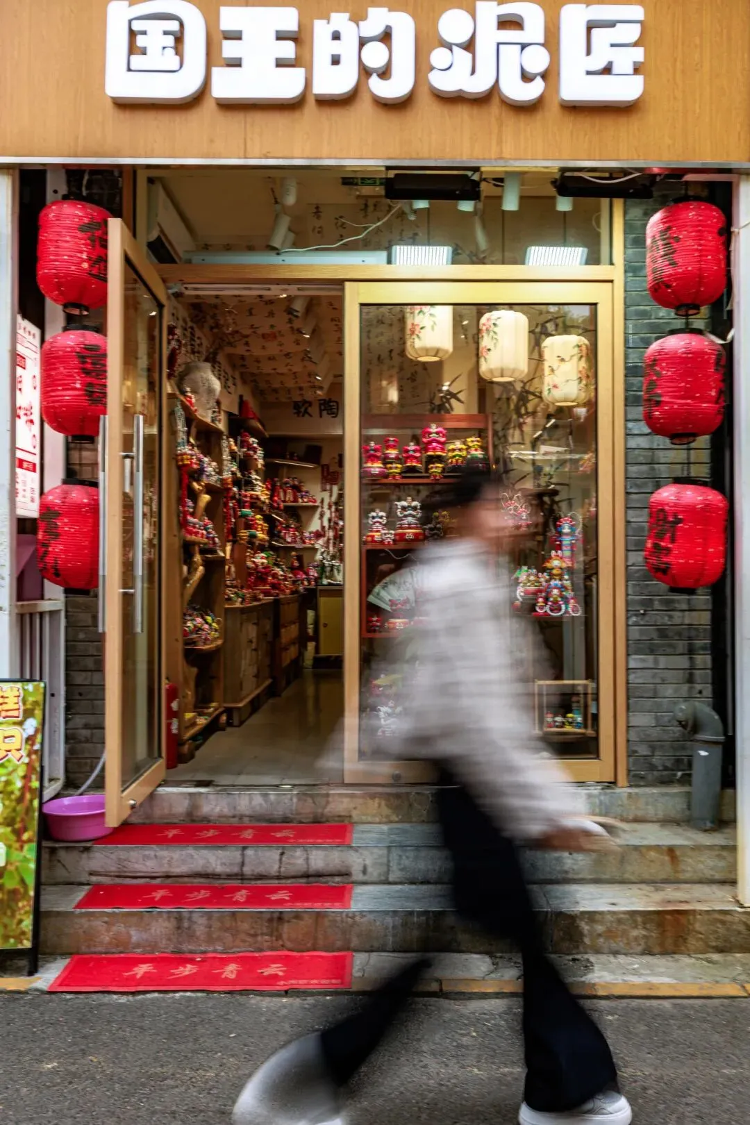一处设计别出心裁的胡同庭院,满院软陶艺术品。兔爷系列软陶作品的细节精致到令人赞叹,小院儿还有喵星人。