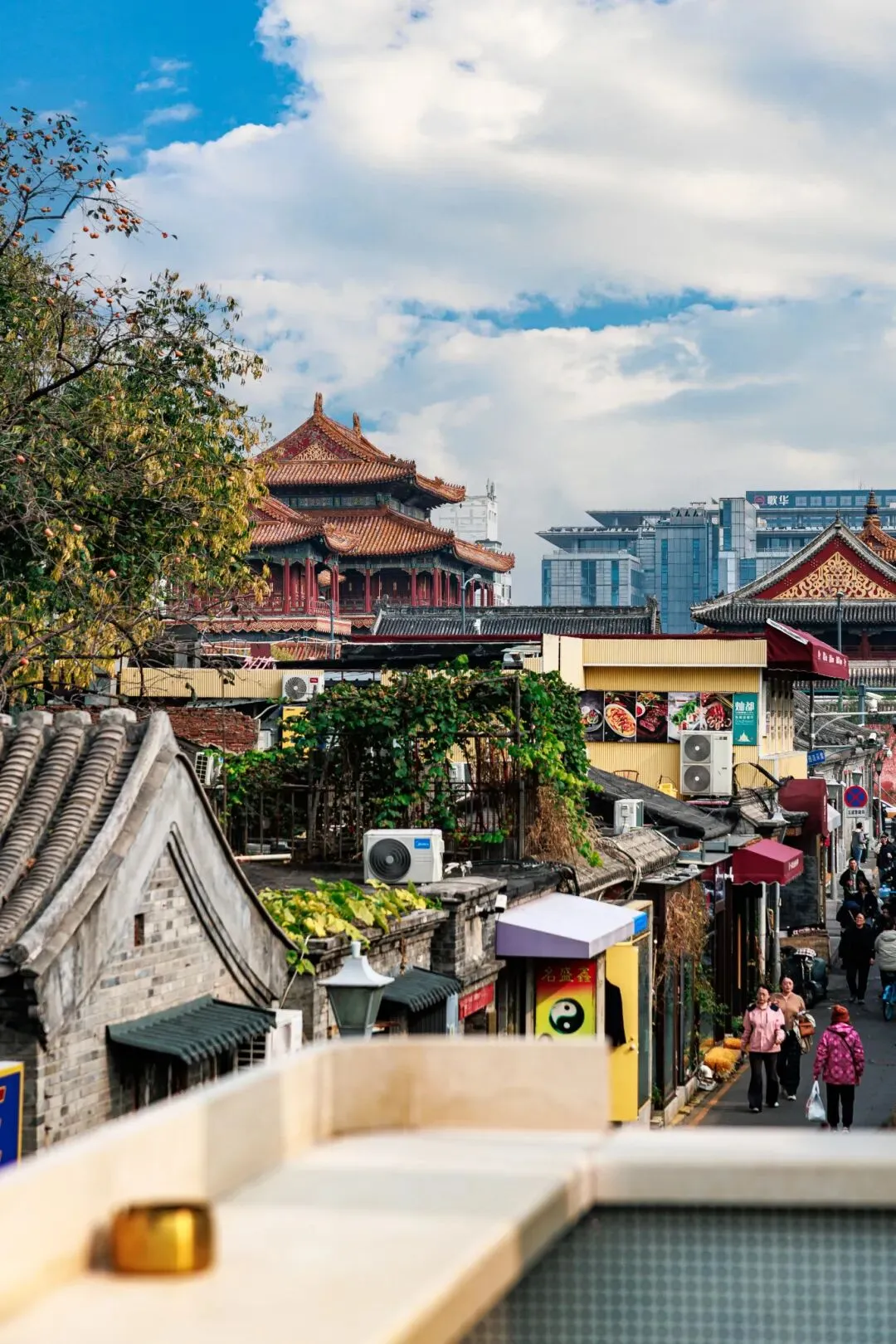福顶咖啡露台的视角可直接看雍和宫侧颜,是个不错的拍照打卡的机位。