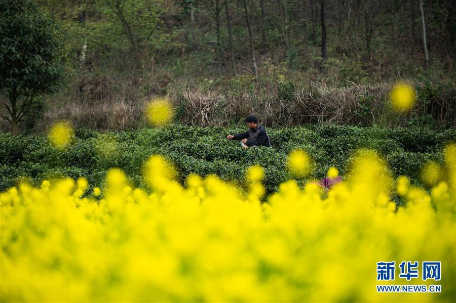 3月13日,工人在贵州省六盘水市六枝特区月亮河彝族布依族苗族乡的生态茶园进行管护。 新华社记者 陶亮 摄