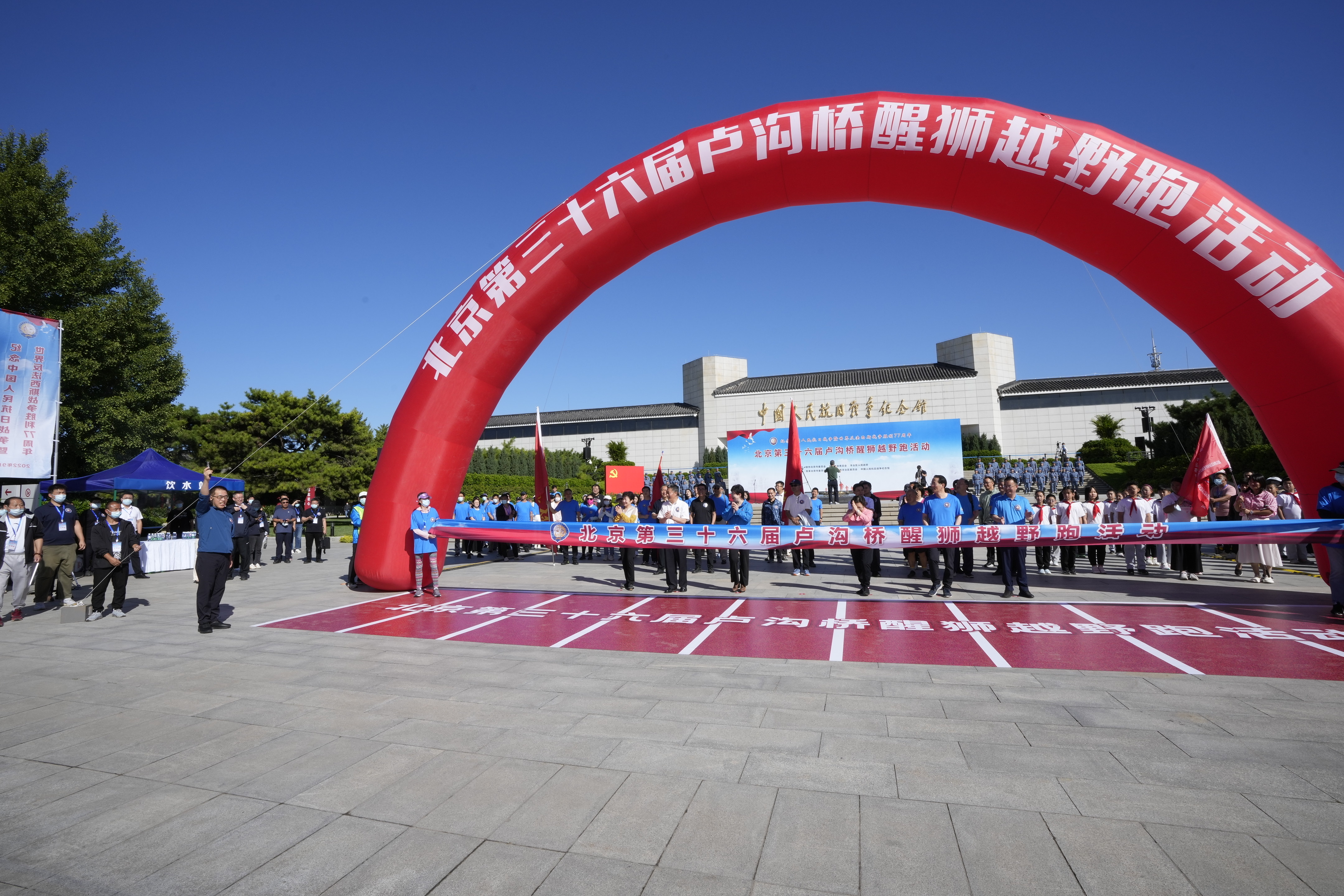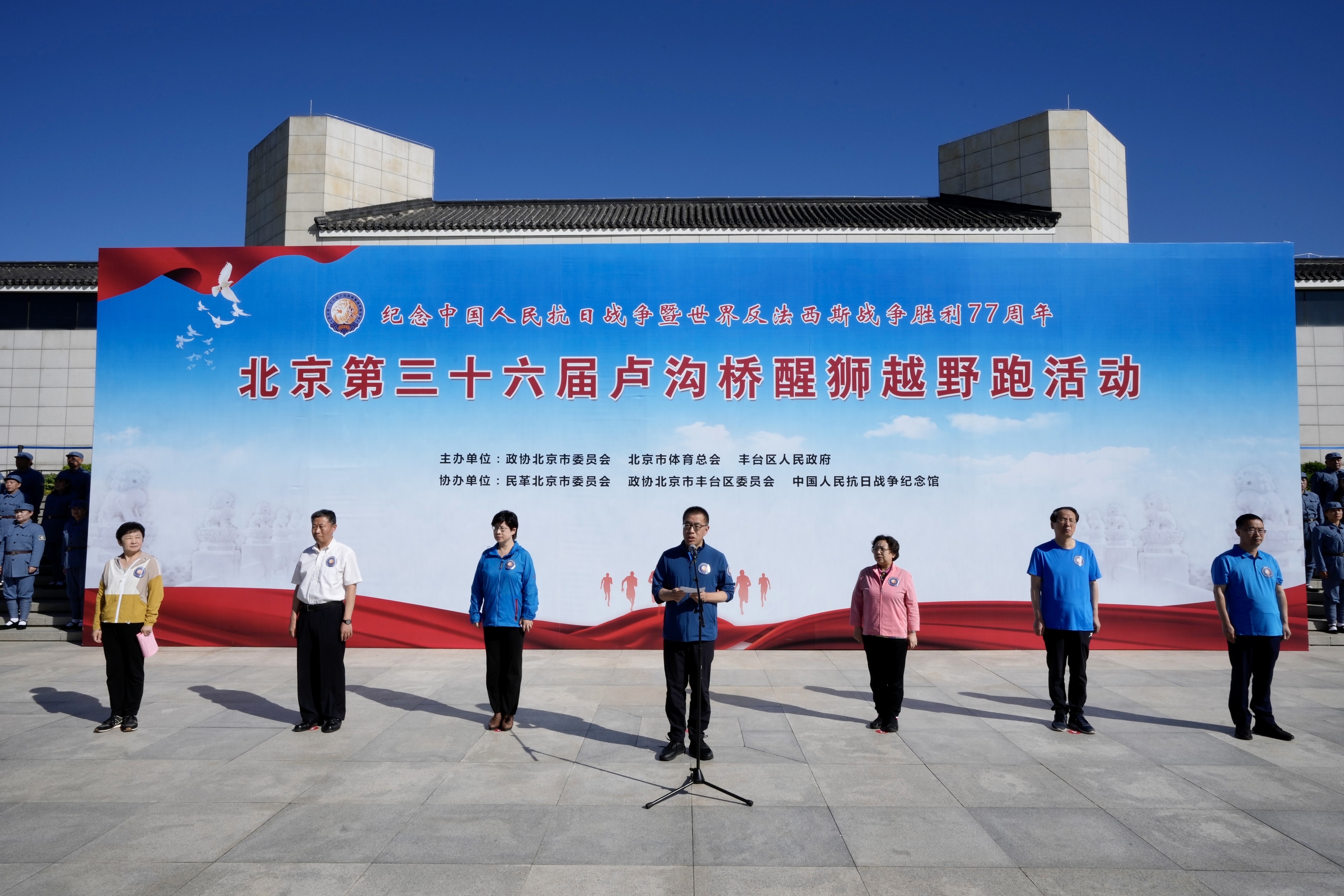 为纪念中国人民抗日战争暨世界反法西斯战争胜利77周年, 9月6日上午,北京第36届卢沟桥醒狮越野跑活动启动仪式在在中国人民抗日战争纪念馆举行。北京市政协副主席王宁致辞并宣布活动开幕,北京市政协副主席王红、燕瑛出席。