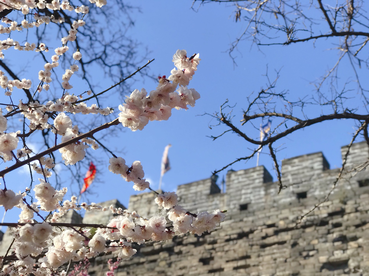 城楼下,城墙边,灰色墙砖旁,一束束鲜花开放,再配上绿柳新垂的嫩色,这两年,明城墙遗址公园也因为盛开的梅花林而成了赏花圣地。