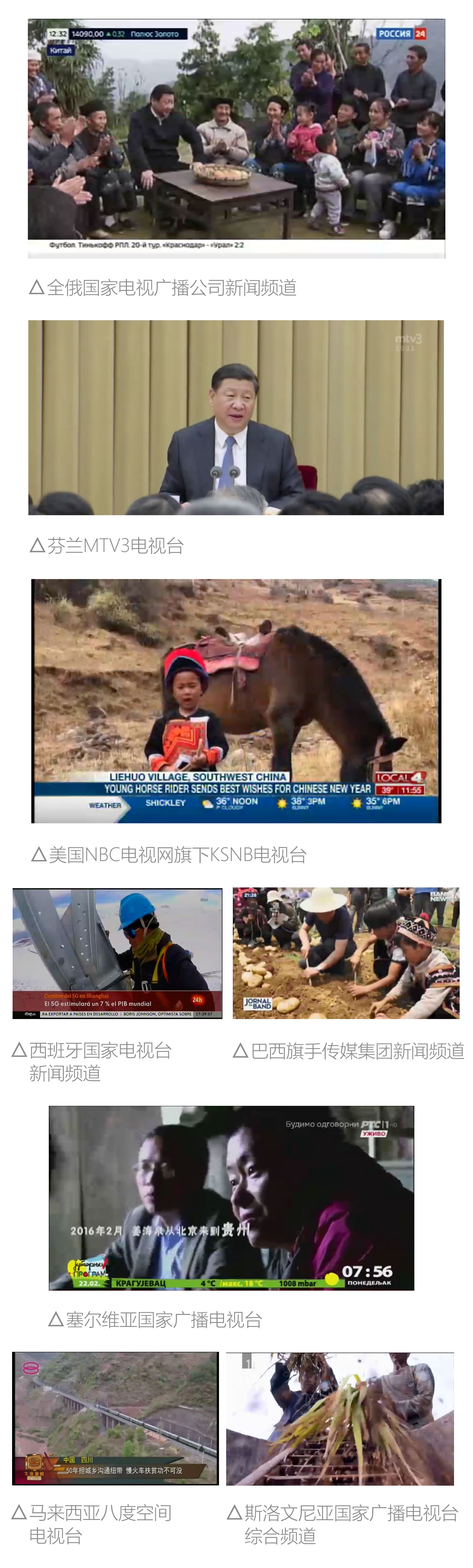 总台国际视频通讯社发挥“丝路视频新闻联盟”“非洲视频媒体联盟”“欧洲伙伴”“拉美伙伴”“太平洋岛国伙伴”五大区域合作机制作用,向全球媒体用户持续推送《摆脱贫困》,相关新闻素材被全俄国家电视广播公司、美国NBC电视网、西班牙国家电视台、芬兰MTV3电视台、塞尔维亚国家广播电视台、巴西旗手传媒集团、马来西亚八度空间电视台等90多个国家和地区的800多家电视台/频道和网络新媒体平台转引转发。