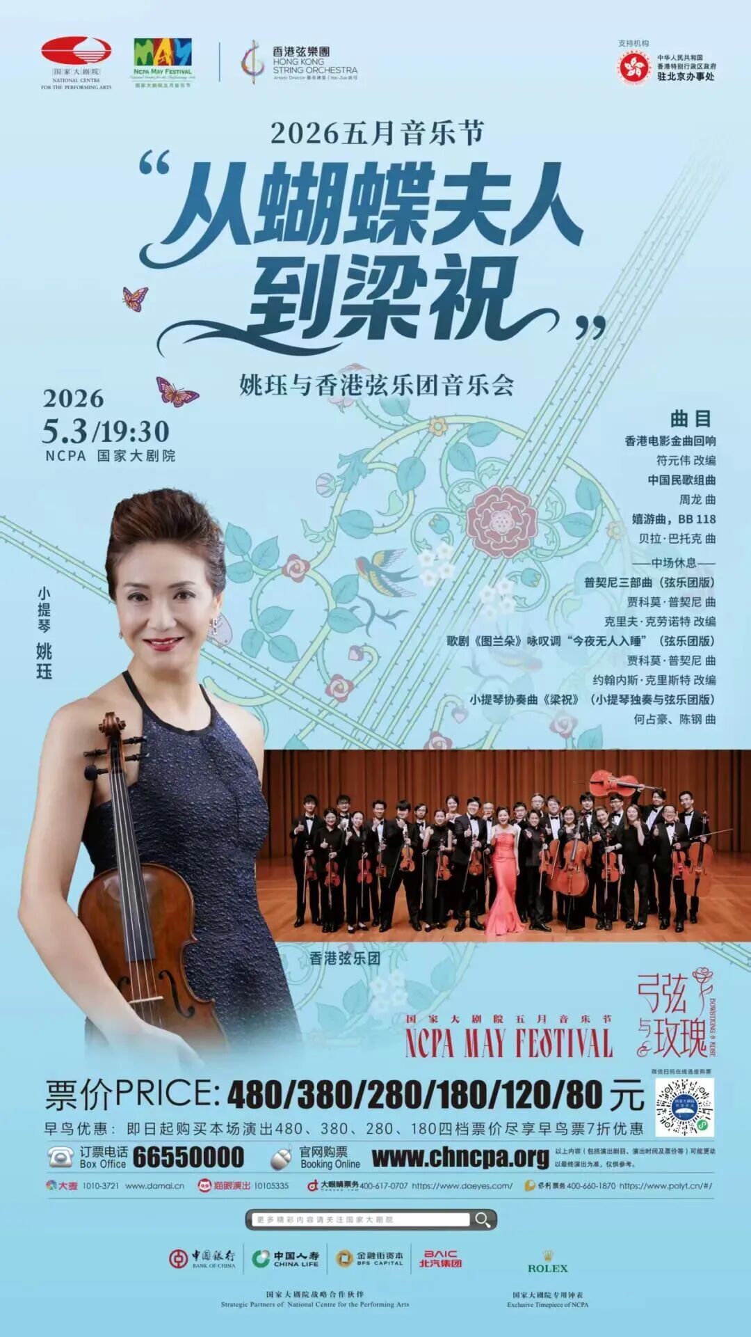 小提琴与弦乐轻拢慢捻间,一场跨越东西方的缠绵对话即将上演。5月3日晚,国家大剧院音乐厅,由享有“首屈一指的小提琴家”盛誉的姚珏,率其倾心创办的香港弦乐团,将普契尼笔下的悲情《蝴蝶夫人》与缠绵悱恻的《梁祝》并置。从意大利歌剧《图兰朵》咏叹调“今夜无人入睡”的炽烈到中国小提琴协奏曲《梁祝》的凄美,奏响跨越国界的浪漫与至情。让我们在弓弦交汇的乐声中,感受东方美学与西方经典的深情共鸣。