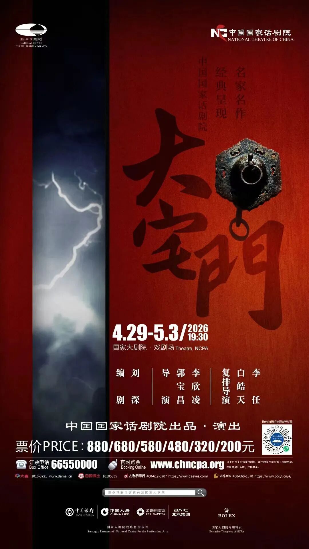 家业飘摇时,七爷白景琦提一盏孤灯巡行百年宅院。4月29日至5月3日,国话话剧《大宅门》将登台国家大剧院。演出以老年白景琦与少年白景琦“穿越式”对话为引,借郭宝昌导演的幕间娓娓道来连缀经典。七十集传奇浓缩为两个半小时的舞台绝唱,吴樾、王新、常玉红、刘佩琦等老戏骨同台,将大宅门里的爱恨情仇、铮铮风骨尽数铺陈。五一假期,看“修合无人见,存心有天知”的中华商道气节,在方寸舞台间荡气回肠。