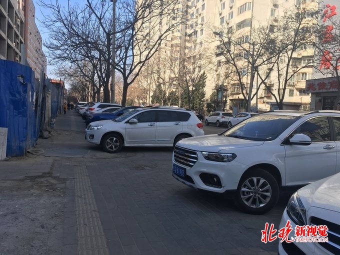 劲松南路中段路南,一溜小轿车骑着人行道停放问题3