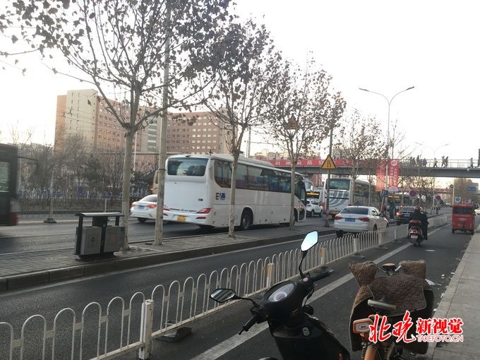 天通苑地铁站外,要将垃圾丢进废物箱要走过非机动车道、跨过护栏、越过辅路“不设置在人行道上的原因是路窄吗?两米多不到三米,但是垃圾桶也不怎么占地方啊。”小马告诉记者,天通苑内部的一些道路两侧,废物箱数量也比较少,找不到废物箱很多人就把垃圾扔在地上了。