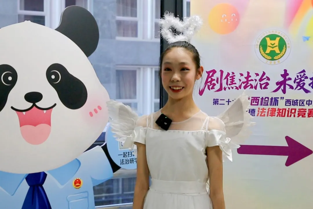 西城区奋斗小学周宸好激动地说:“我们获得第一名非常激动开心,这么多次的努力排练终于开花结果。我们演绎的是一个用AI制作视频侵犯他人肖像权的故事,教会我们不能随意使用、丑化、传播他人肖像。”
