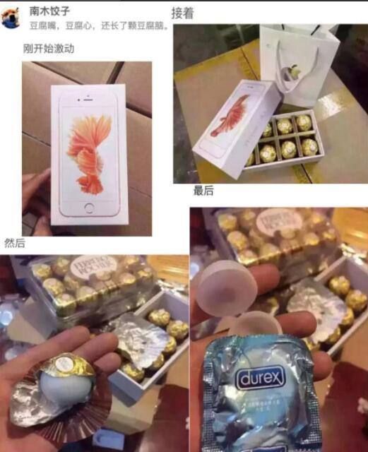 很期待,惊喜有木有?本以为是个手机,打开是巧克力,恩,还能勉强接受,最后是个什么鬼?