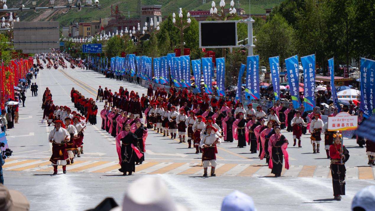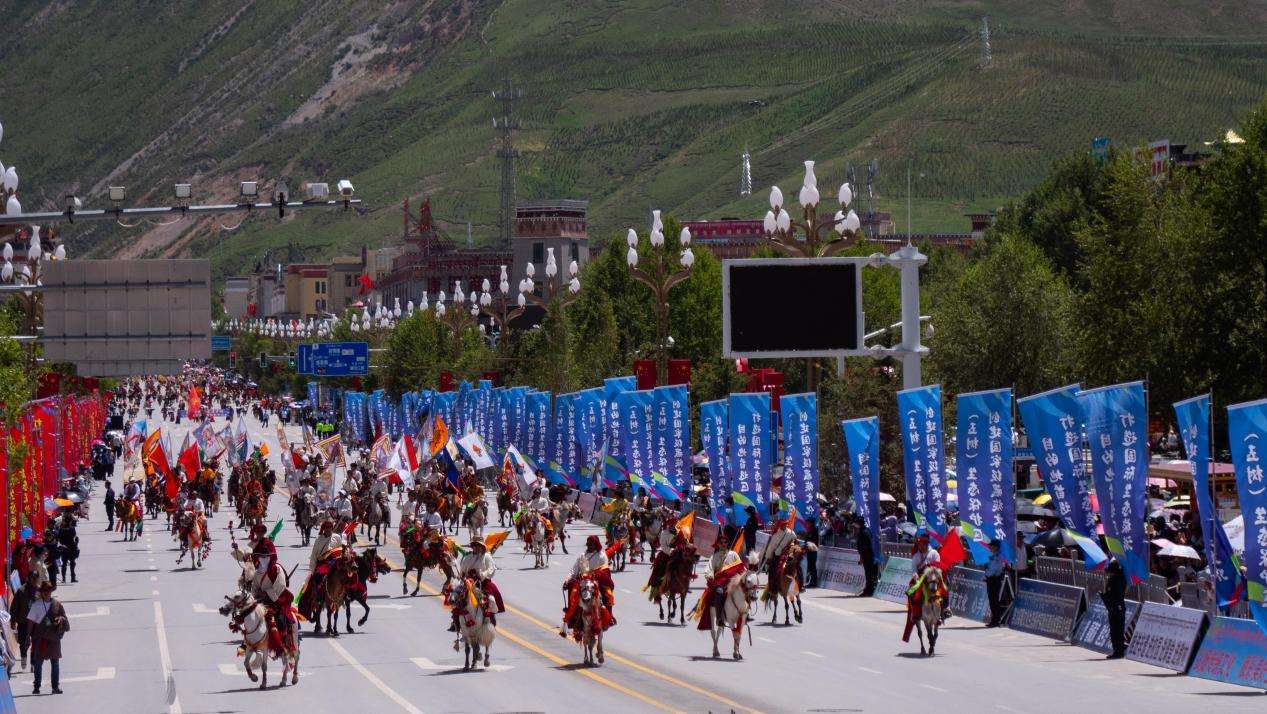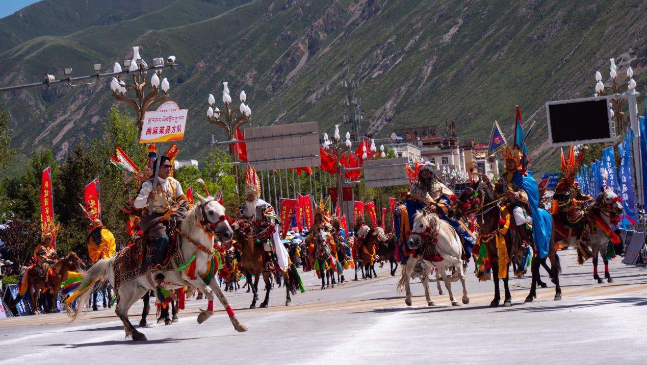 湛蓝的天空映衬着高原的江河,洁白的雪山滋养无垠的牧场,伴随着轻快的鼓点音乐,头顶盘着“英雄穗”,穿着绚丽多彩的民族服饰,腰和脖子上缀着银子、绿松石、玛瑙等饰品的康巴汉子驭马而来,一年一度的“潇洒的康巴人”巡演正式开演,来自玉树州一市五县的数千名康巴藏族儿女身着盛装,载歌载舞,以行走巡演方式展示玉树丰富多彩的非物质文化遗产。近两小时的巡游,吸引了众多省内外游客和当地各族群众观赏,掌声和欢呼声此起彼伏。